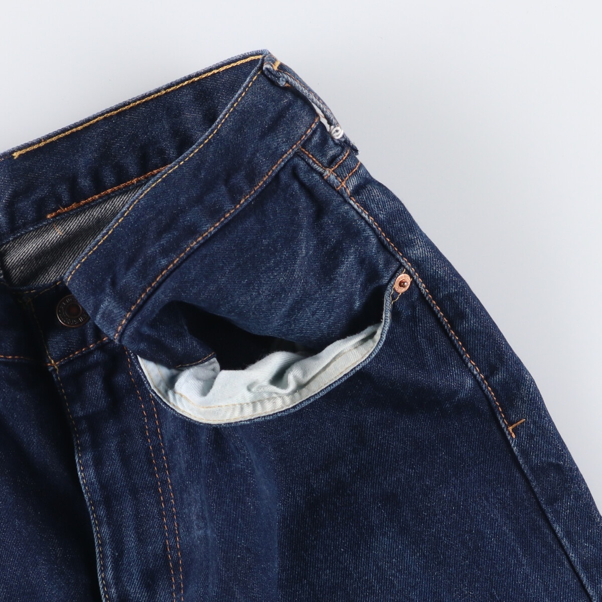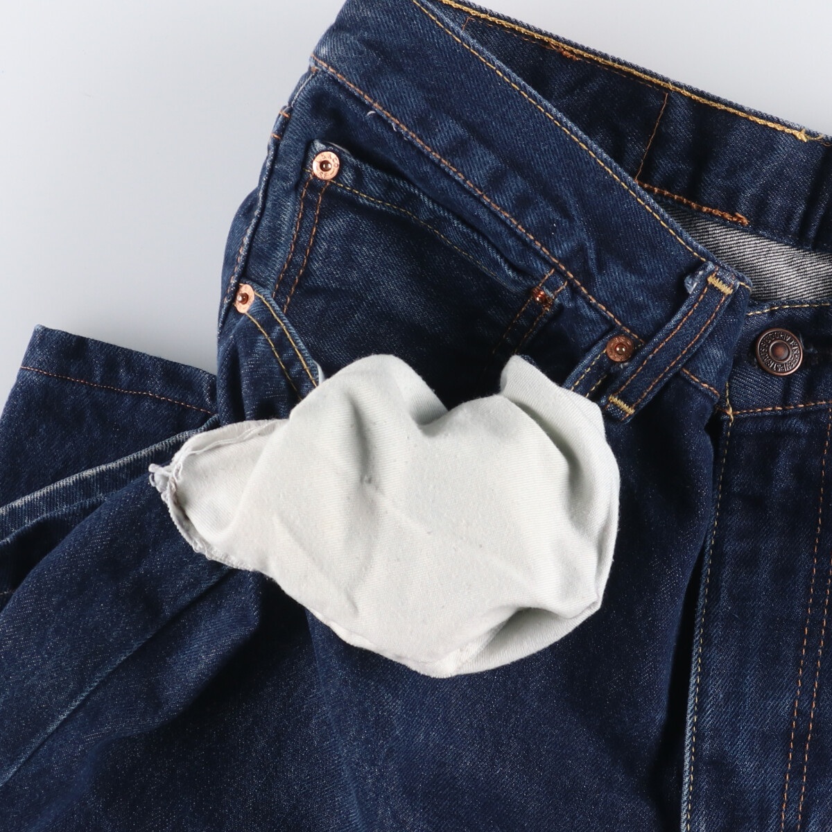 | 表記サイズ: W34 L34 ウエスト: 88cm 股上: 29cm 股下: 74cm もも周り: 63cm 裾周り: 48cm ![]() | ![]() ランク:C USEDデニムですので使用感、擦れ、色落ちなどございますが、まだまだご愛用していただけます。 古着という事をご理解の上ご注文よろしくお願いします。 【状態追記】 ●裾上げ加工 ●前、両ポケット(内・口)に汚れ |