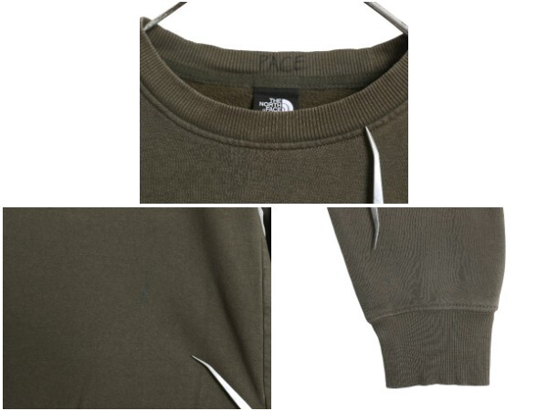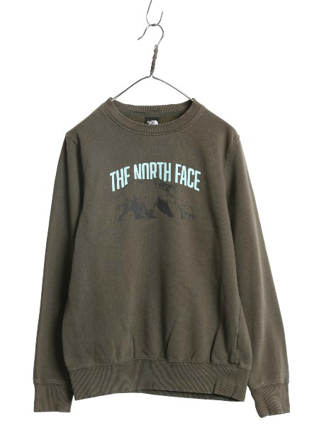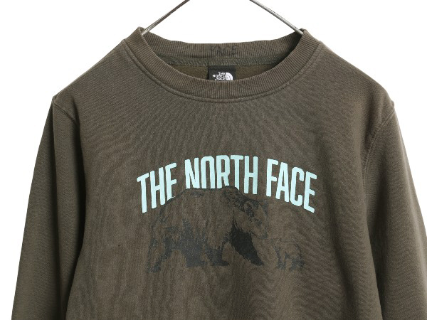 商品名 | ノースフェイス プリント スウェット メンズ S 古着 アウトドア トレーナー 裏起毛 ベア イラスト グラフィック クルーネック 薄手 カーキ |