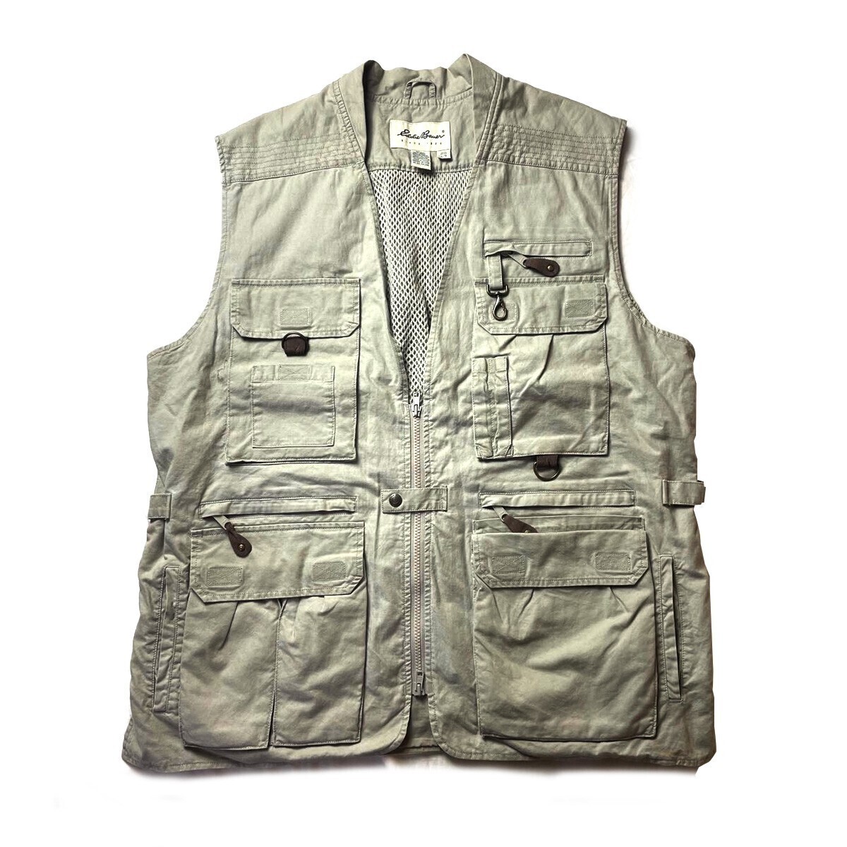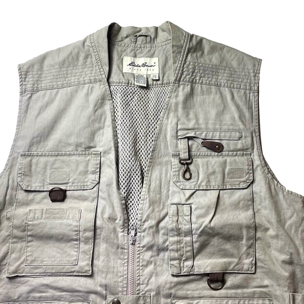 2000円スタート! 90s Eddie Bauer エディーバウアー ヴィンテージ ノースリーブ フィッシングベスト ベージュ L 大きいサイズ メンズ 古着