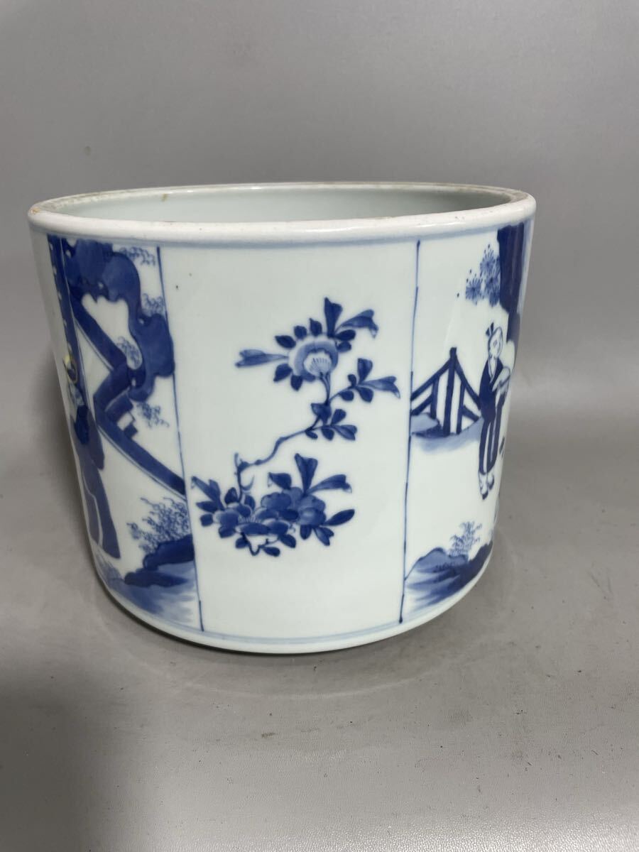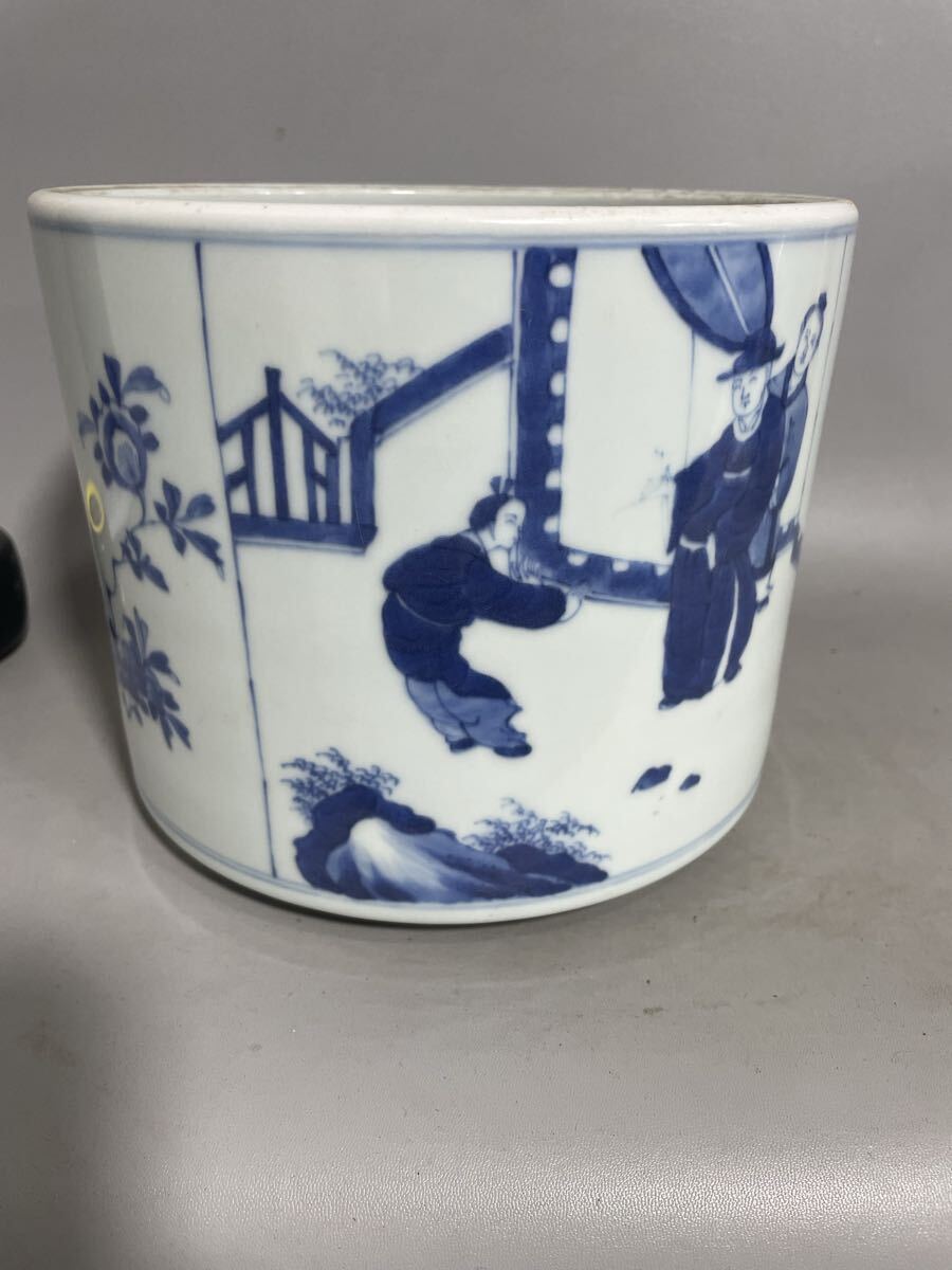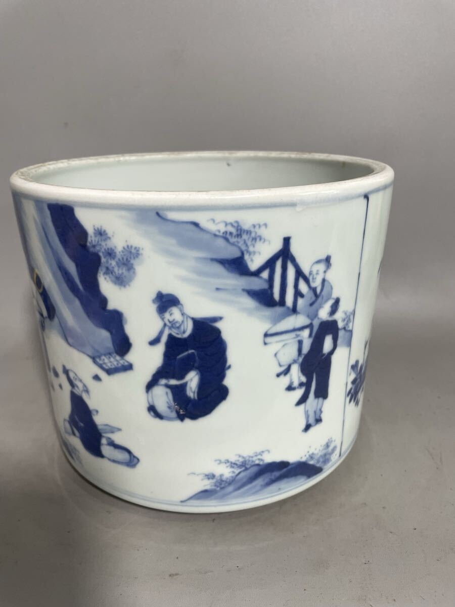 【雅園】中国古美術 清時代 青花 筆筒 古玩 骨董 時代物 古美術 唐物 当時物 置物 lo43