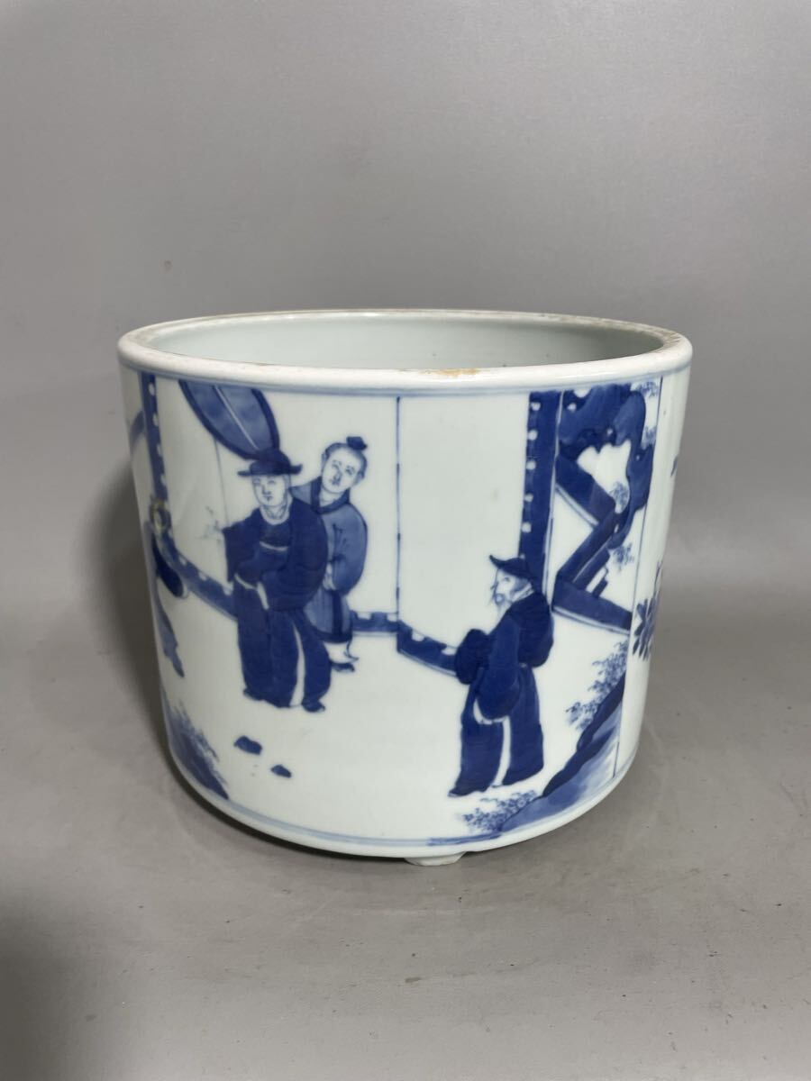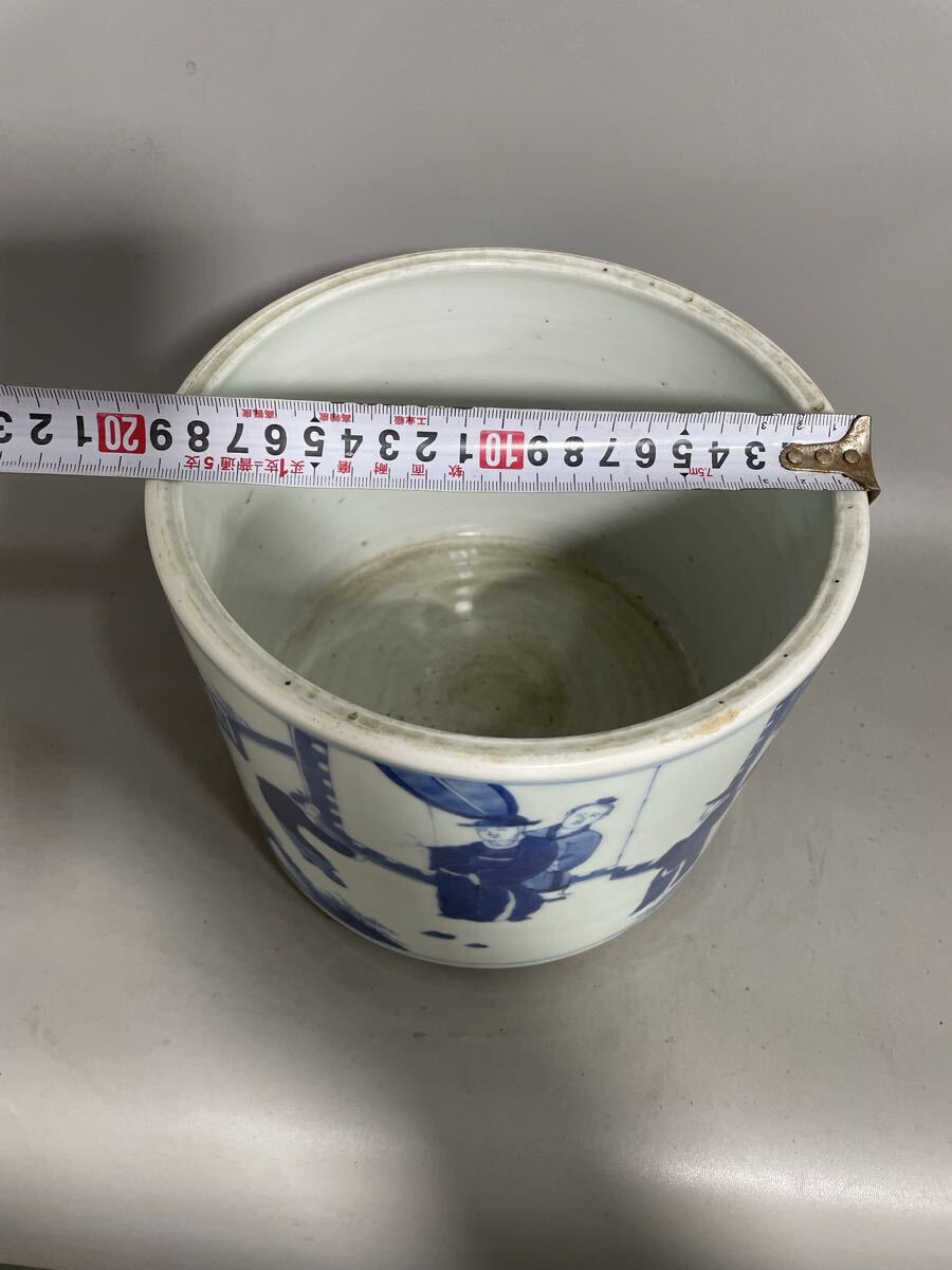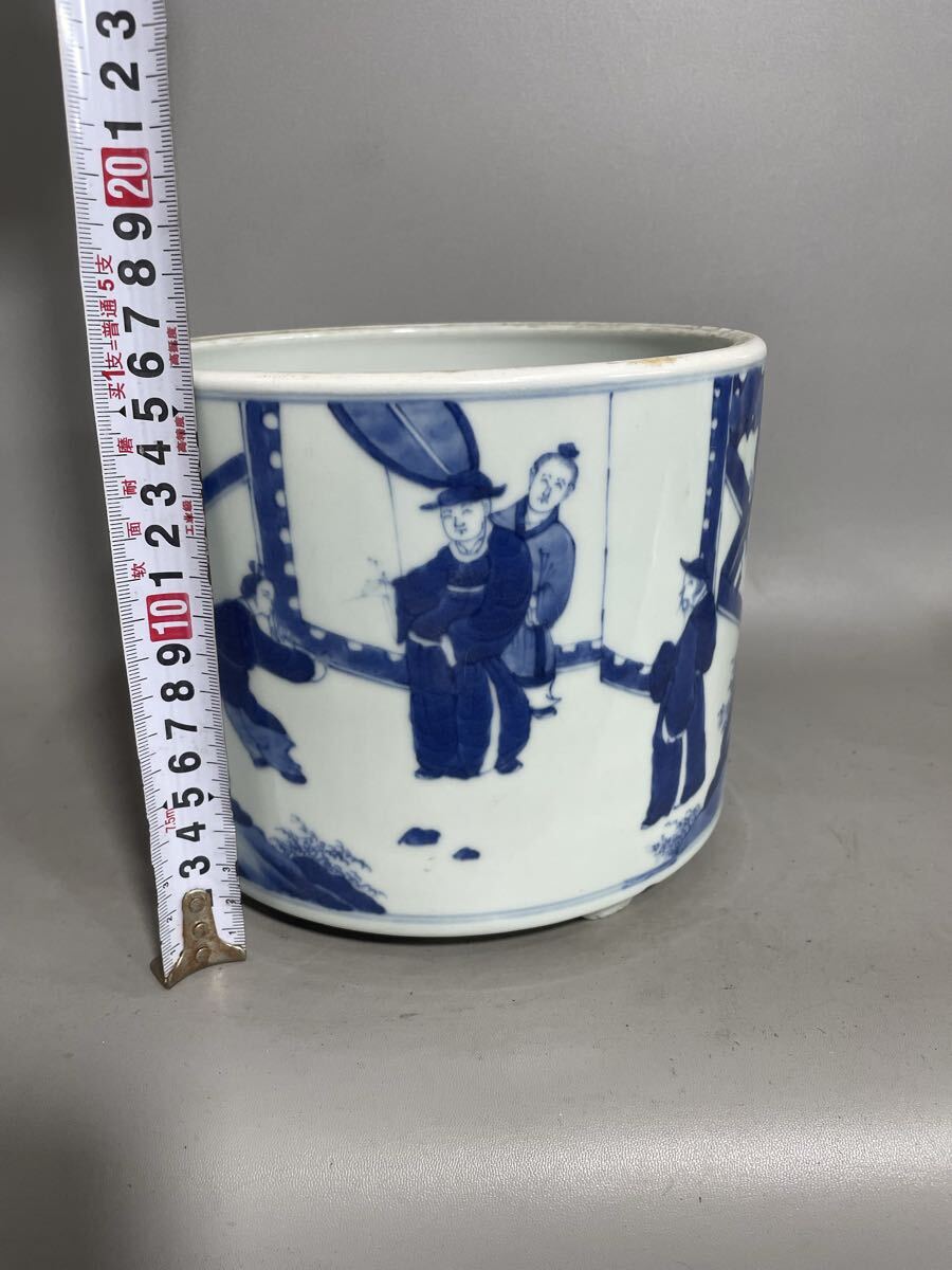 【雅園】中国古美術 清時代 青花 筆筒 古玩 骨董 時代物 古美術 唐物 当時物 置物 lo43