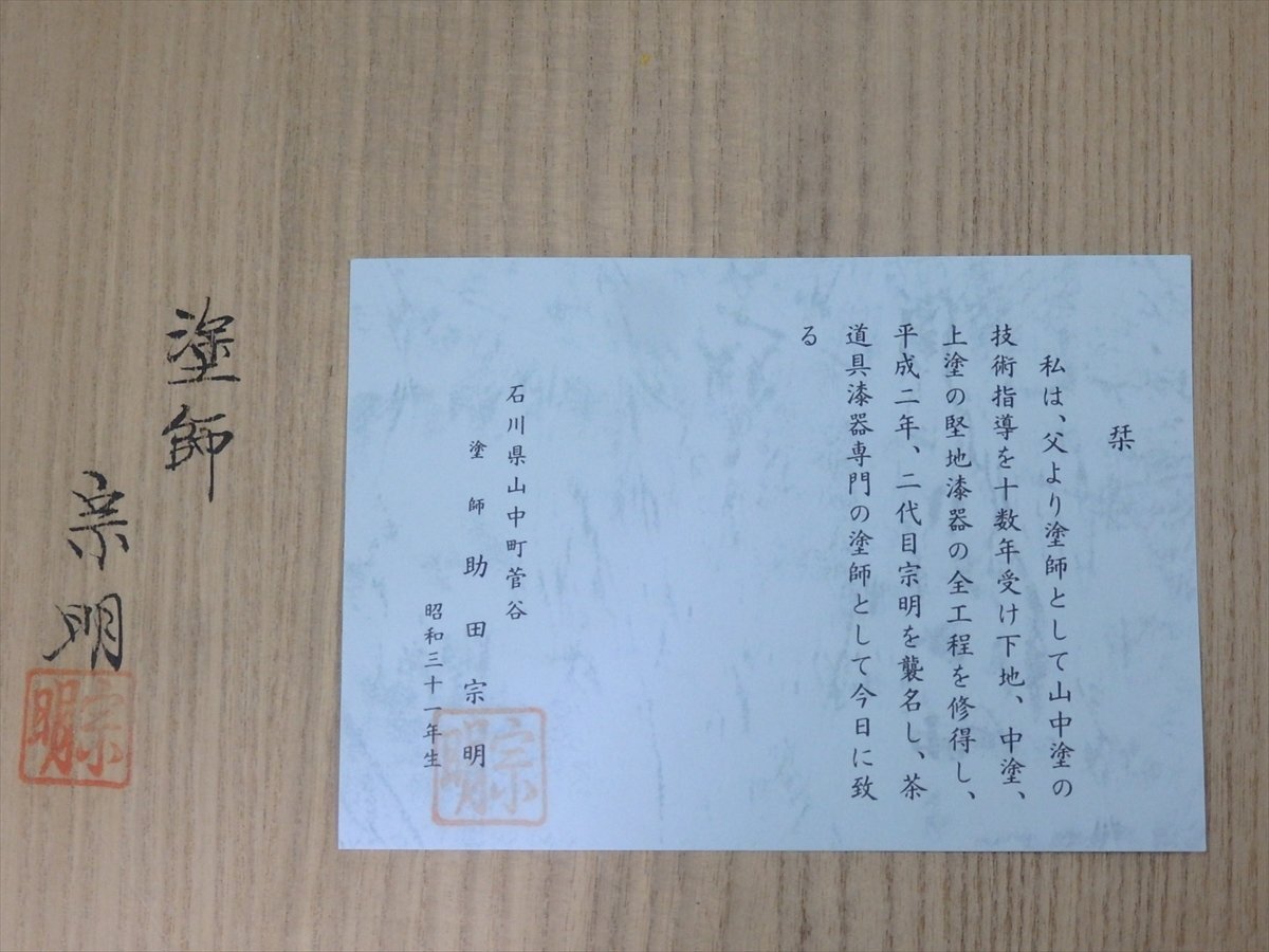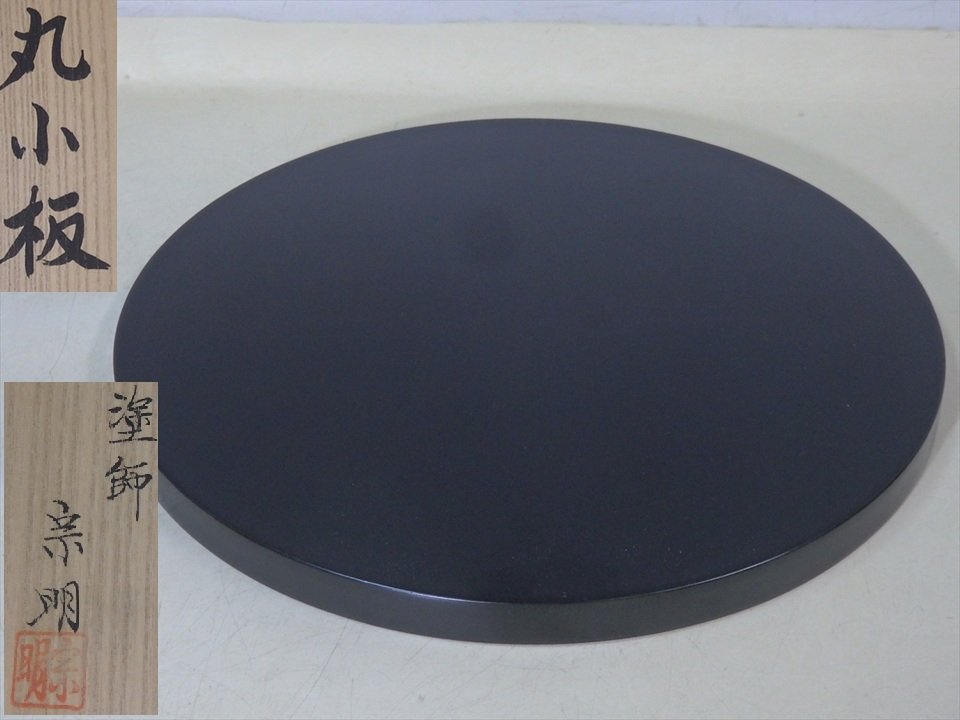 ★極美品!二代目 助田宗明【丸小板 共箱】木製 真塗 直径30cm 厚1.8cm 茶道具 莨盆 茶器 茶事 漆器 丸板 敷板