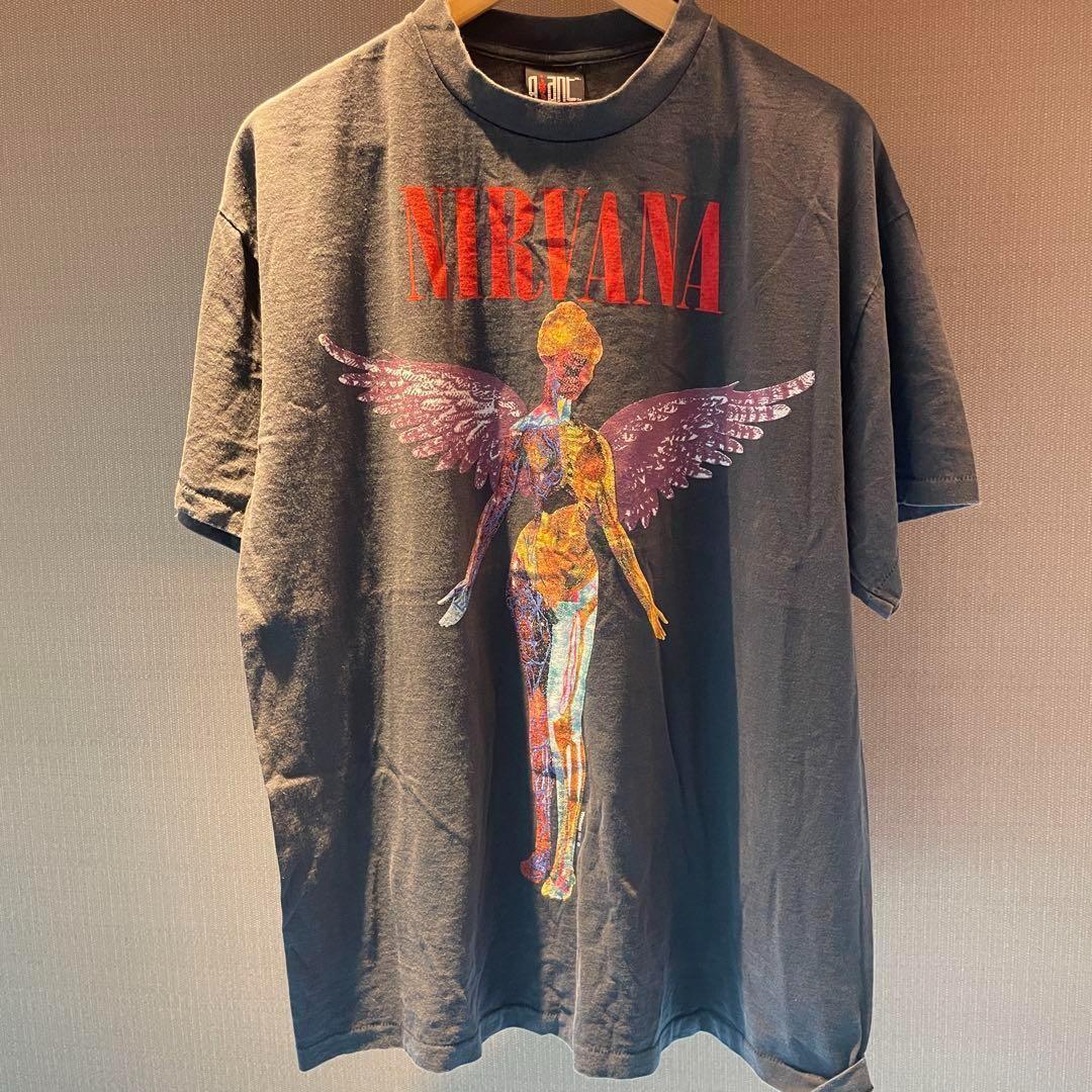 NIRVANA レッドロゴバージョン ブラックTシャツです。