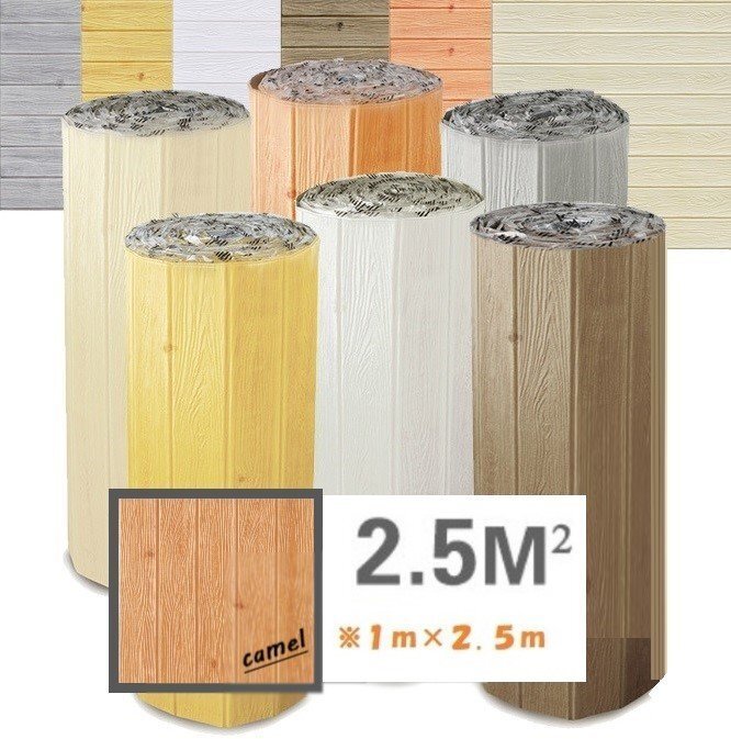 ロール売【1m×250cm】木目 ナチュラルカラー B374 キャメル ブラウン 3D クッション 壁紙 シール 糊付き リメイク 耐水 抗菌 傷防止