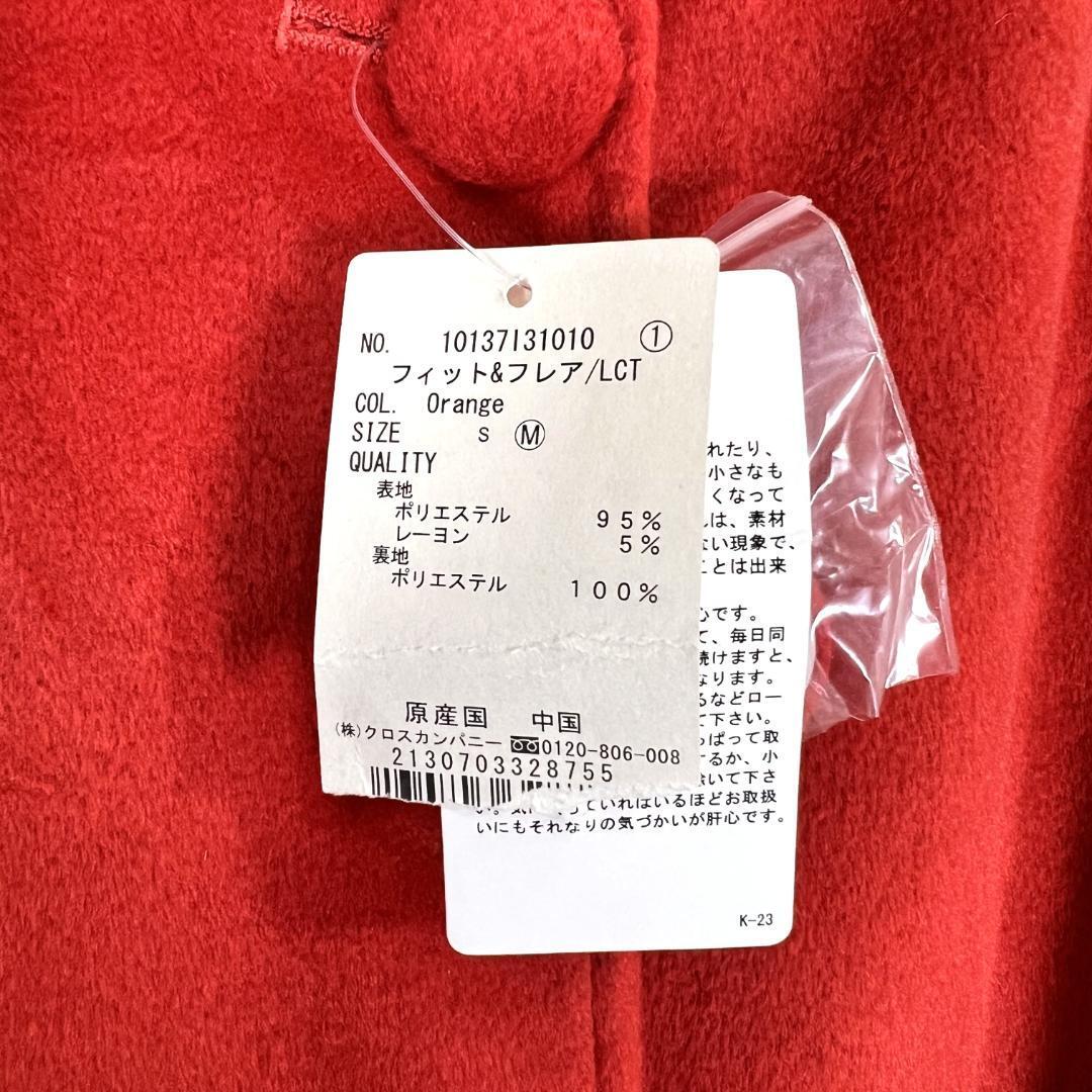 女性用のオレンジ系のフィット&フレア ロングコート アウター ジャケット ブルゾンです。新品タグ付きの未使用品です。earth music&ecology アースミュージックアンドエコロジー 株式会社クロスカンパニー