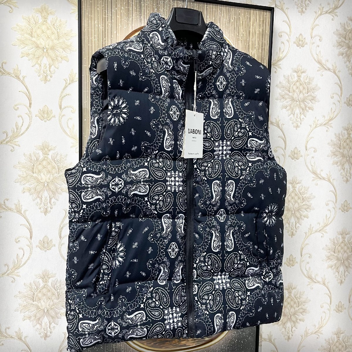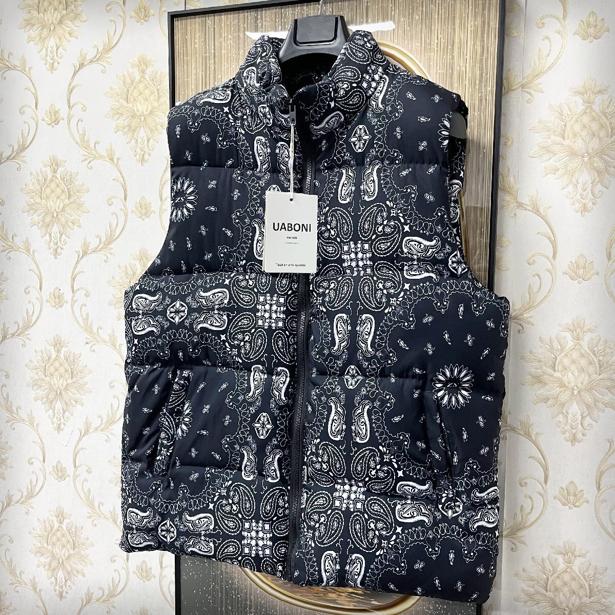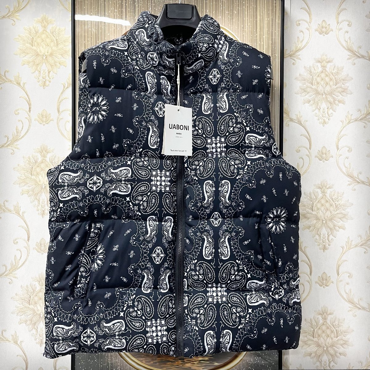 最高級EU製&定価5万◆UABONI*Paris*中綿ベスト*ユアボニ*パリ発◆個性 肉厚 防寒 カシューナッツ花 オルテガ柄 ジャケット 日常着 L/48