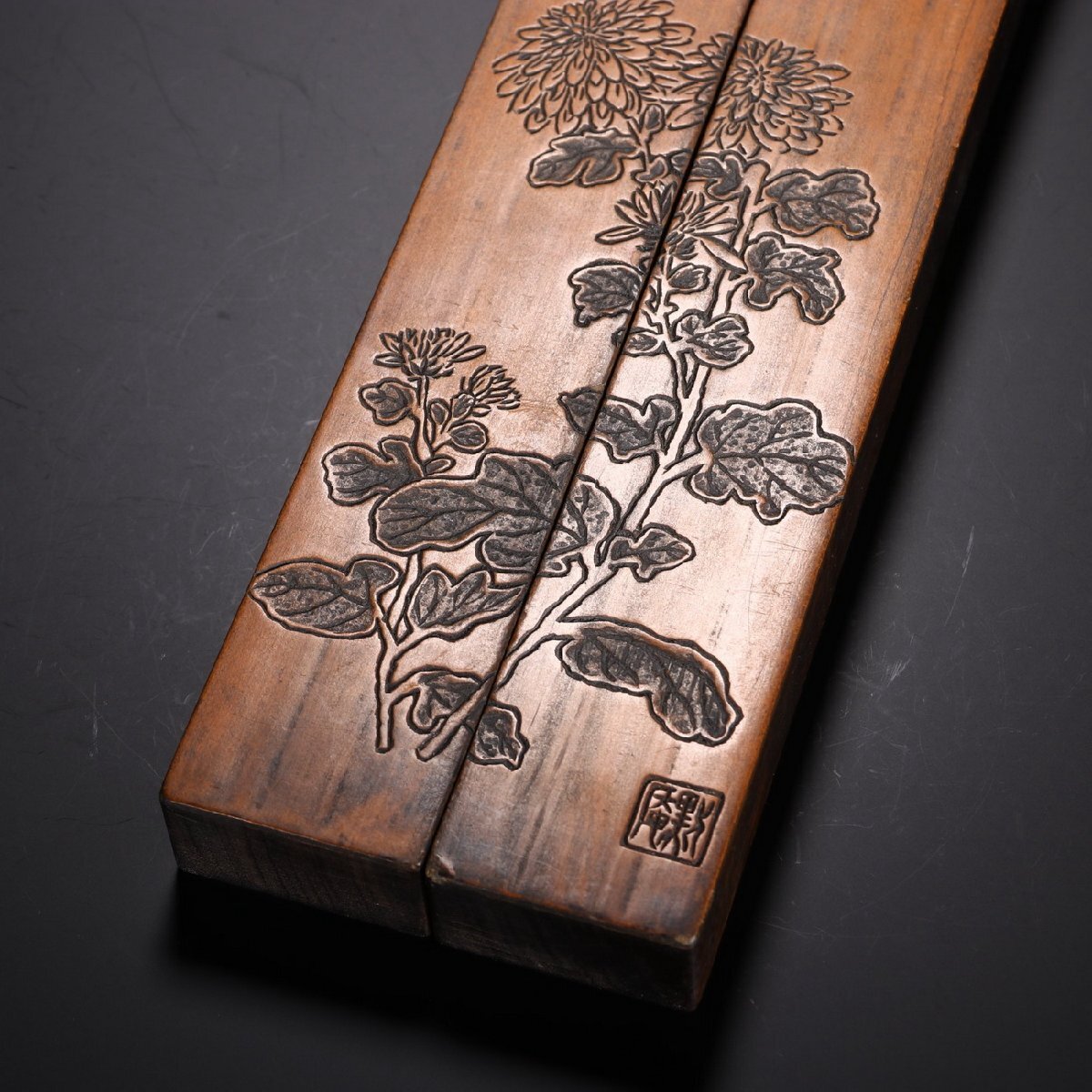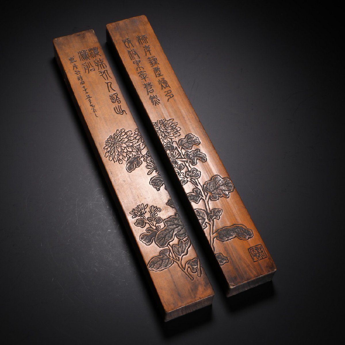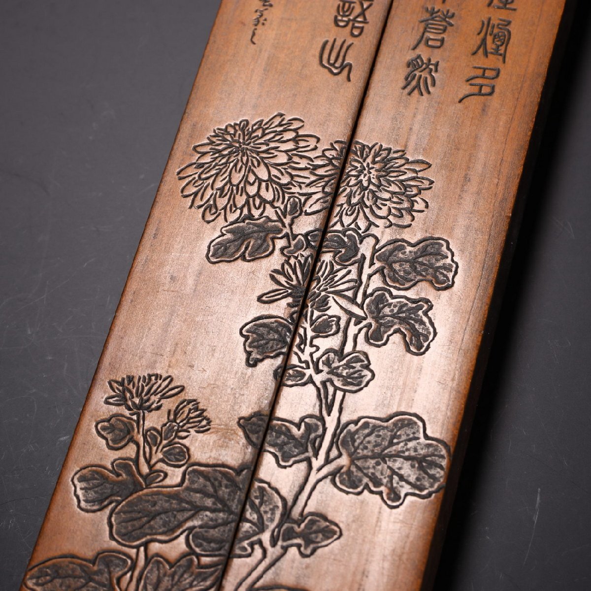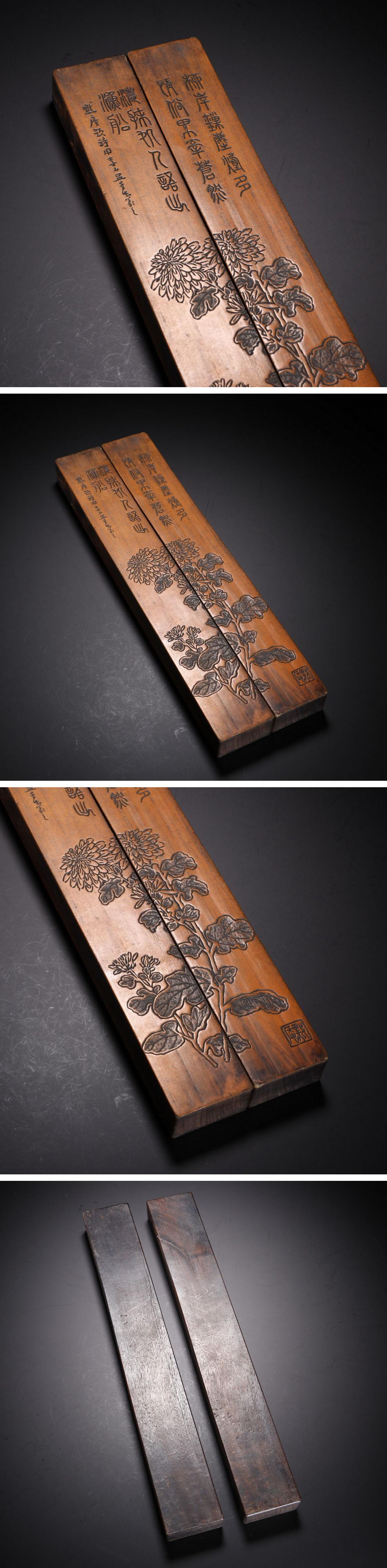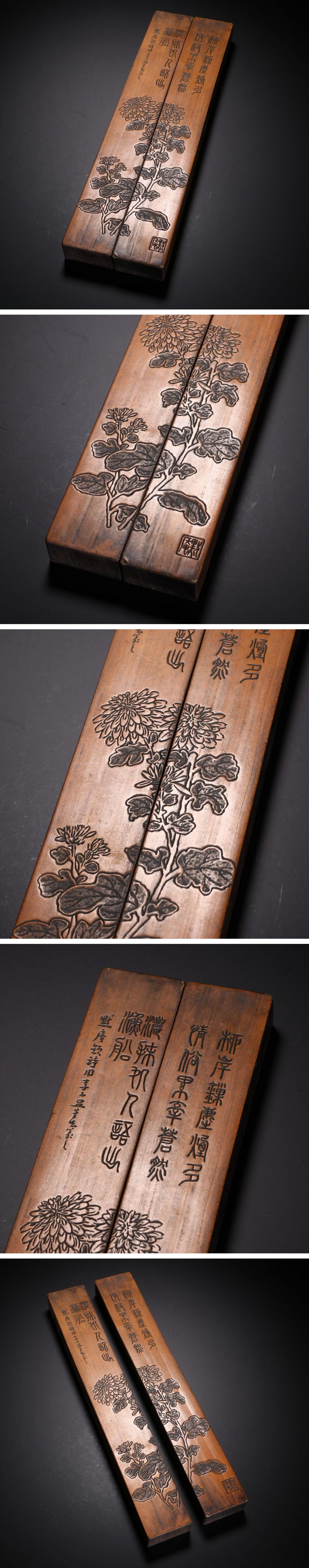 【清】某有名オークション購入 清時代 木胎貼黄 漢詩花卉紋鎮紙 材質保証 古置物 古擺件 古美術 時代コレクション7L9-OG4