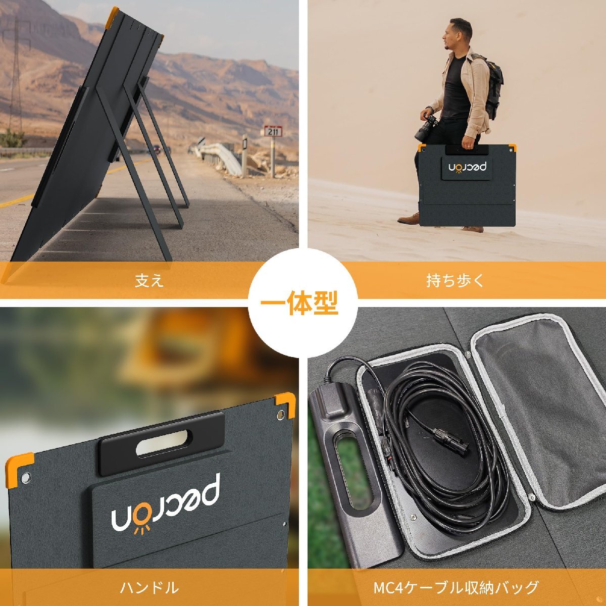 【おすすめ】 39V/5.1A PECRON ソーラーパネル 充電器 軽薄版 200W 23.5%高変換率 折り畳み式 ポータブ