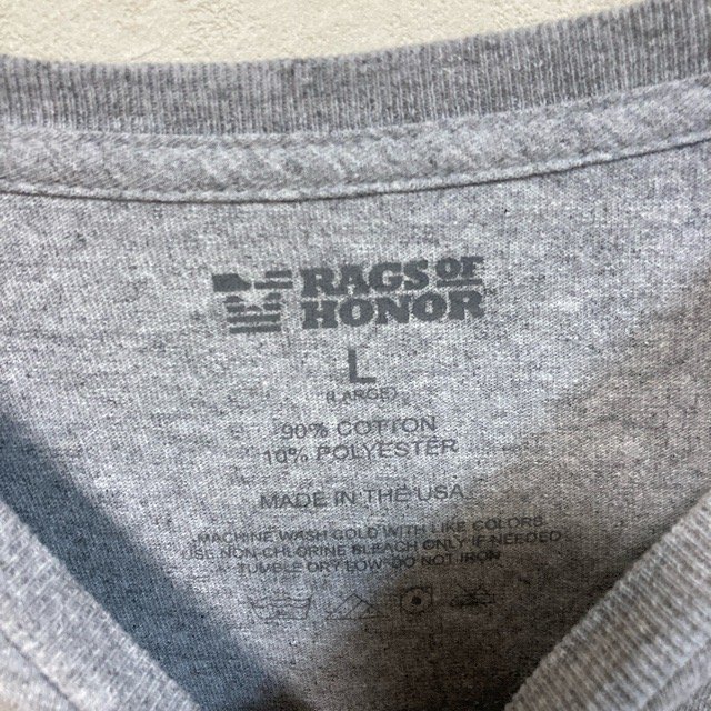 A97 ラグスオブオナー L アメリカ古着 USA製 コットンポリ 長袖 プリントTシャツ グレー RAGS OF HONOR メンズ