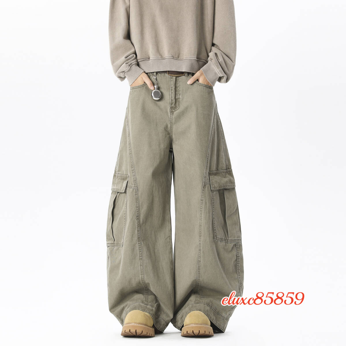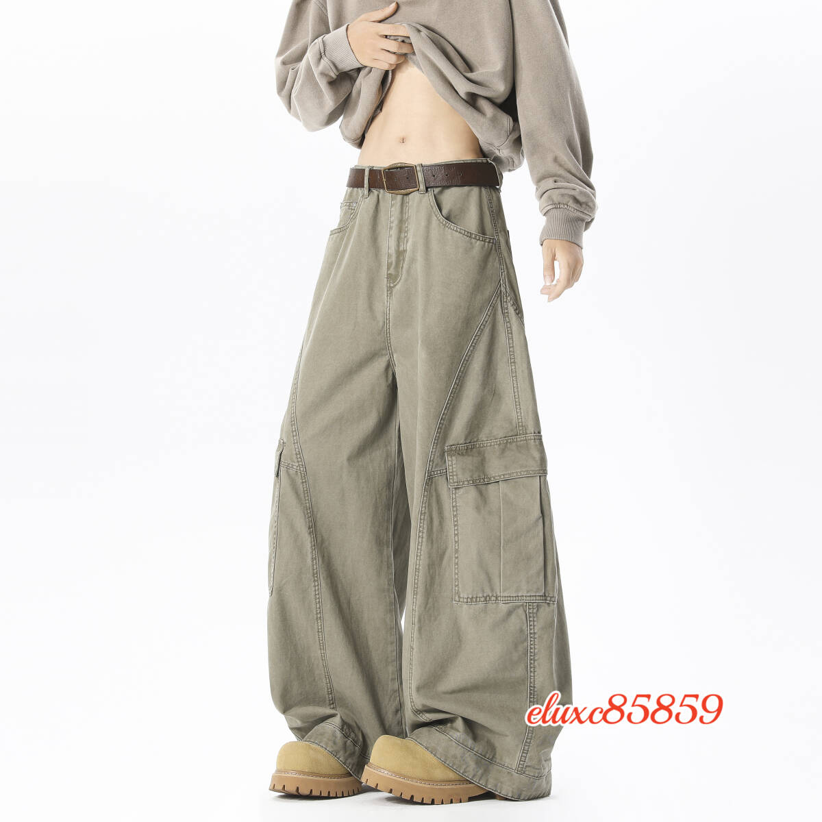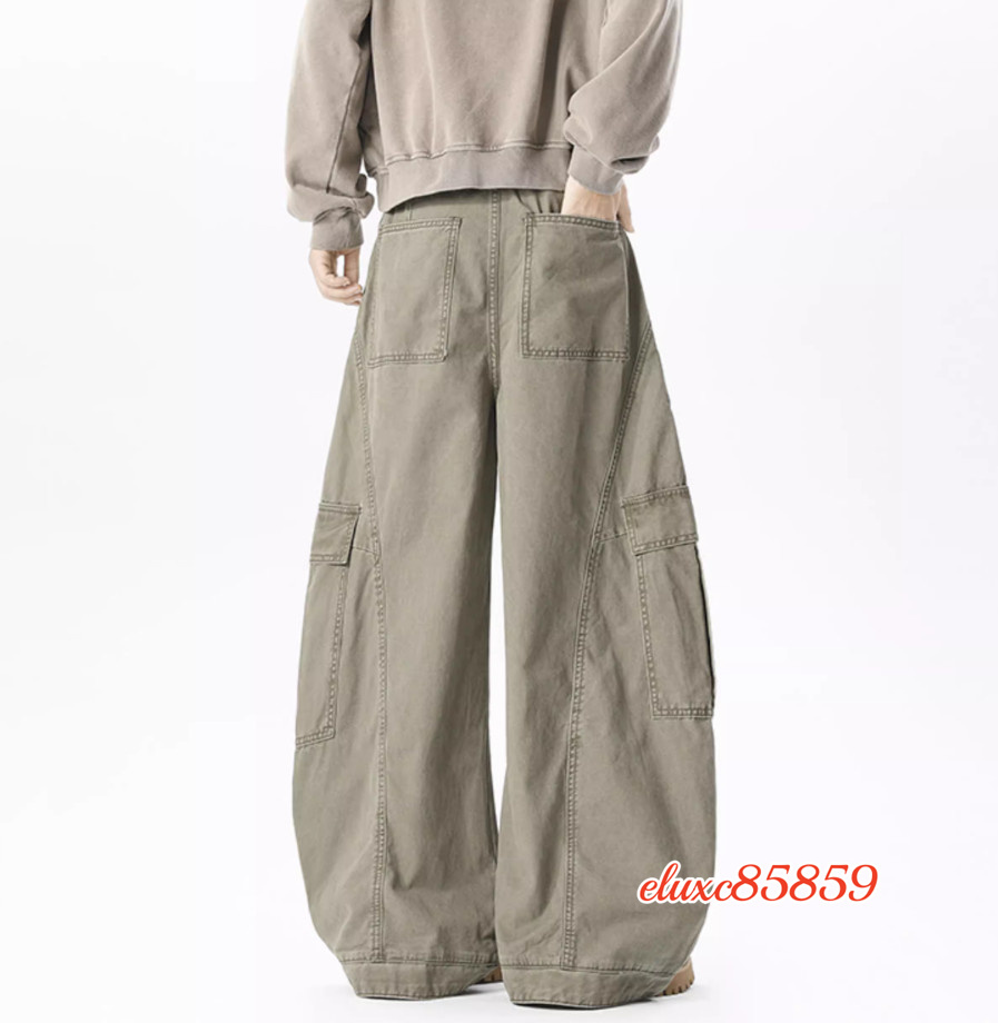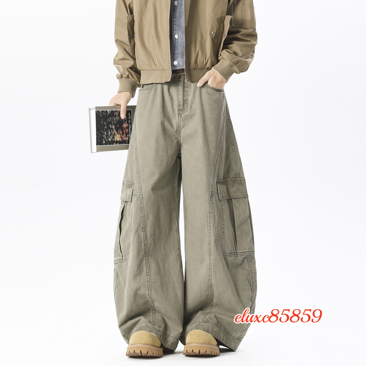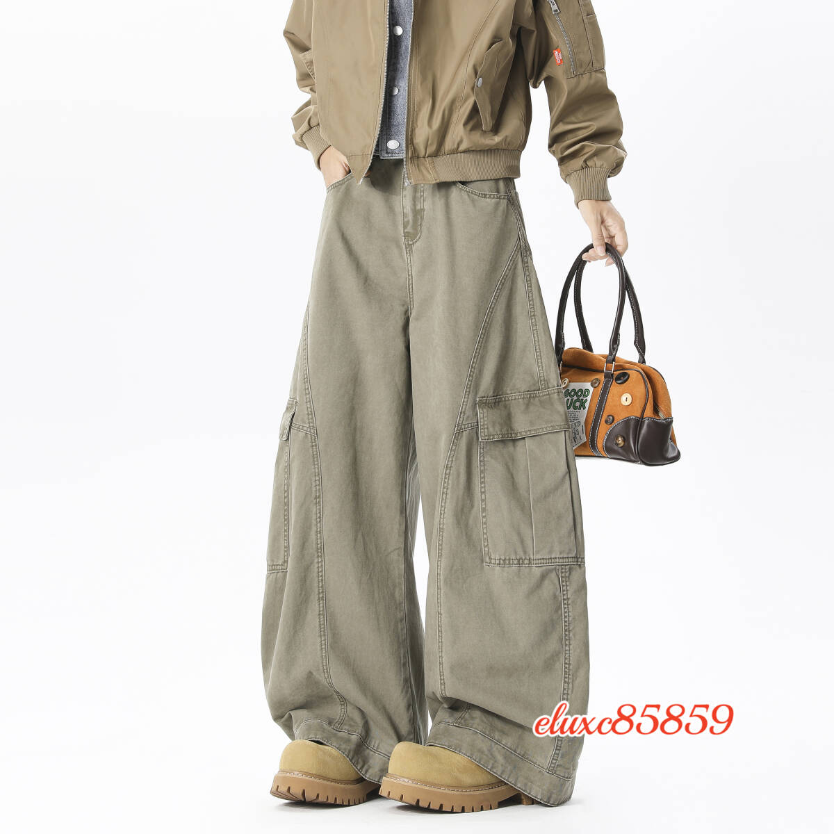 秋冬新品 メンズ カーゴパンツ ワークウェア ミリタリー ワイドパンツ ストレート 作業パンツ アウトドア XL~3XL選択 カーキ