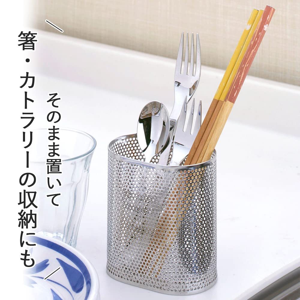 下村企販 箸立て パンチング楕円 シルバー 9.2×7.8×10cm 日本製 33708