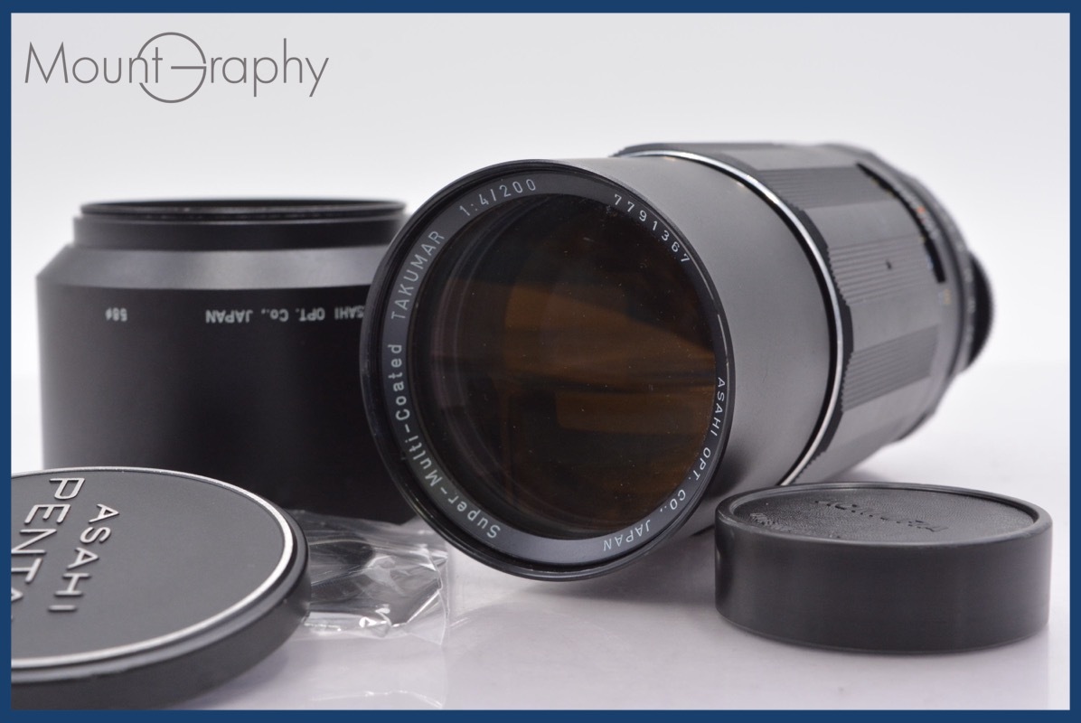 ★極上美品★ ペンタックス PENTAX Super-Multi-Coated TAKUMAR 200mm F4 前後キャップ&レンズフィルター、フード付 ★完動★ #mj4914