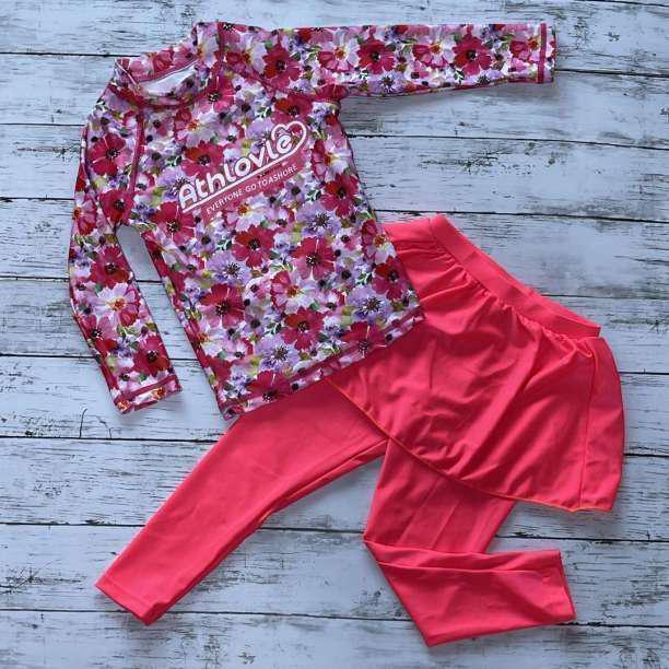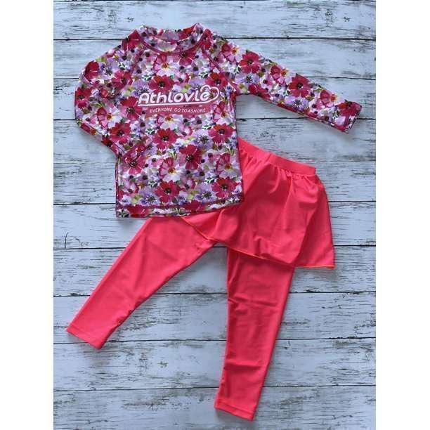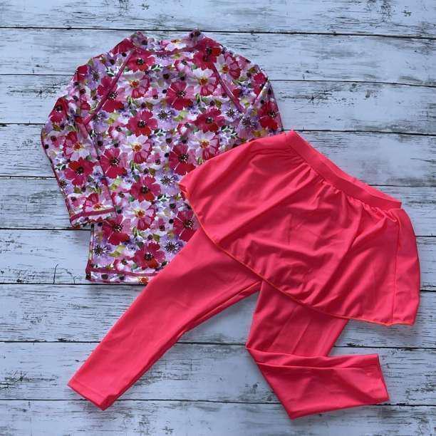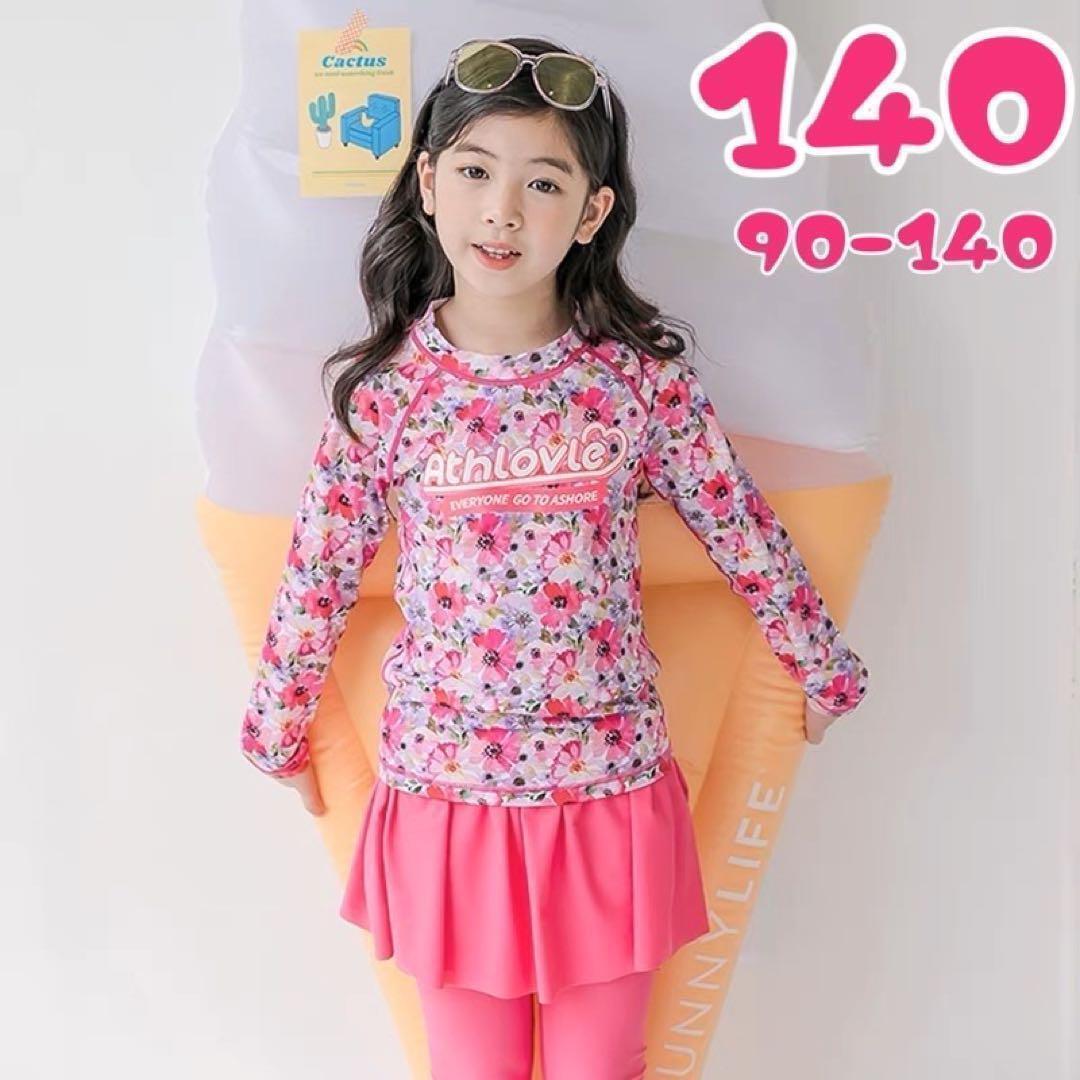 新品未使用 140 ラッシュガード 水着 女の子 ピンク レギンス 長袖 上下セット 花柄セットアップ 女児 ガールズ スカッツ