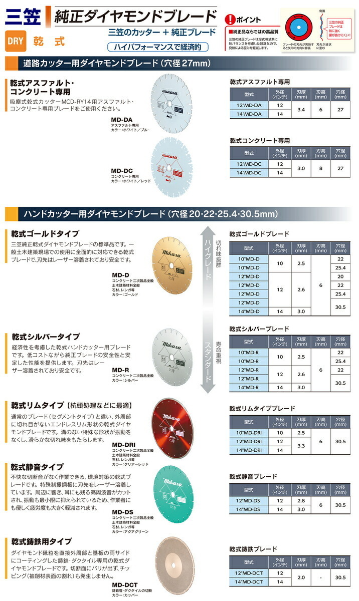 mikasa/三笠 純正ハンドカッター用ダイヤモンドブレード 乾式シルバーブレード 10"MD-R 穴径25.4mm