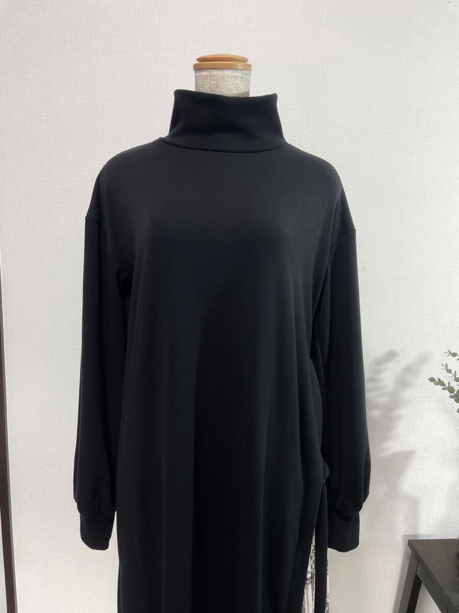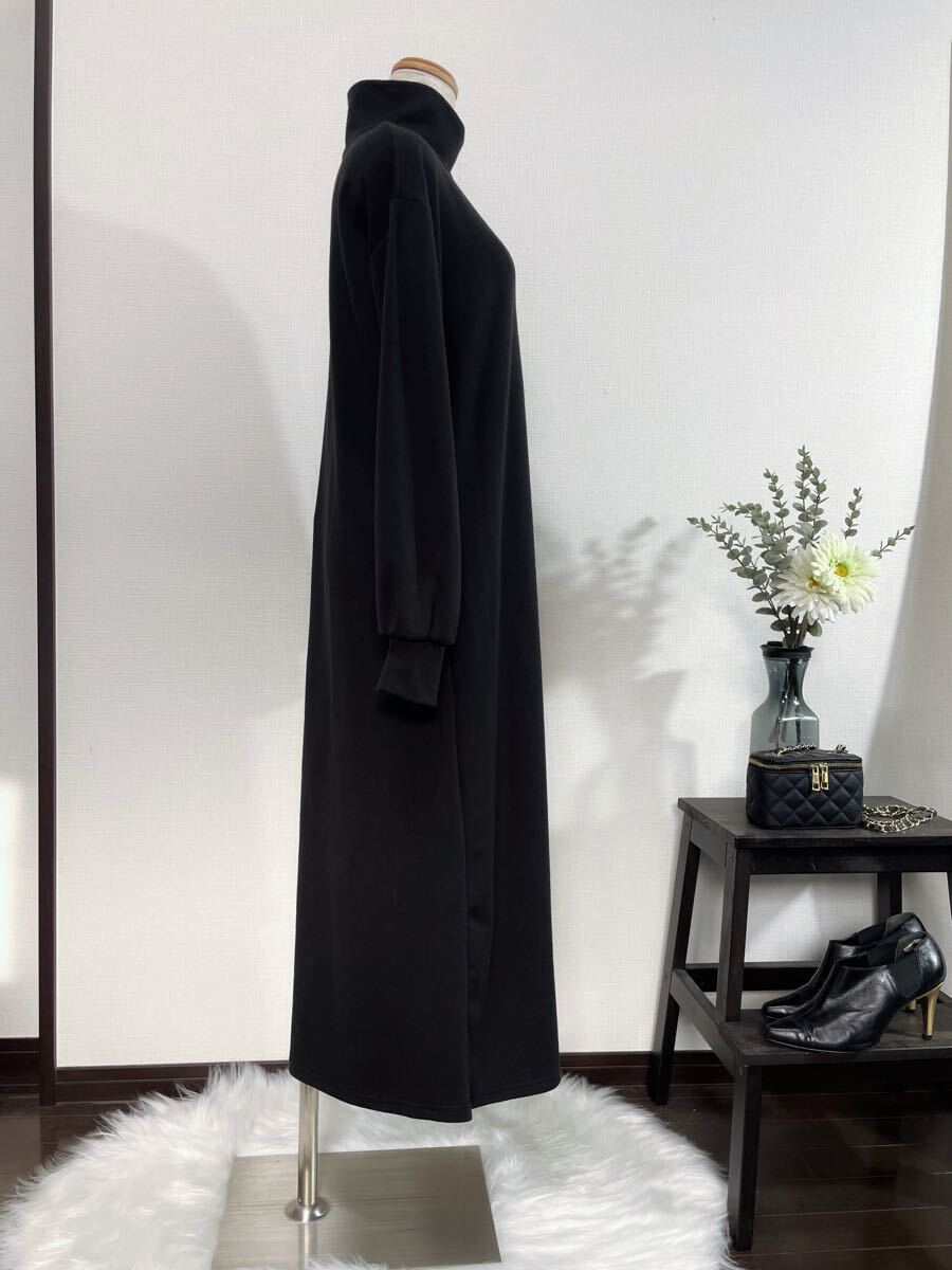 La-gemmeラジエム裏起毛 サイドプリーツワンピース レディース ロング丈 長袖 ハイネック タートルネック ワンピ プリーツ あったか 切り替え 異素材 マキシ丈 ベルト 2025秋冬