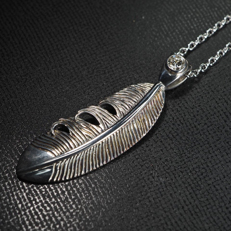 ◆即決あり◆ SV シルバー 925 フェザーネックレス 1PD ダイヤモンド D0.344 鑑定書 14.3g ゴローズデザイン風 「27848」