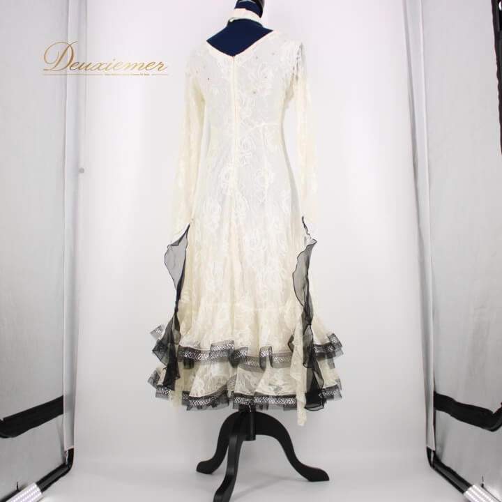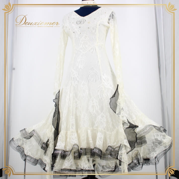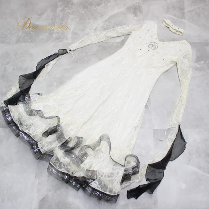 | 【商品名】社交ダンス衣装 ドレス 【サイズ】サイズフリー 平置き実測:総丈約111cm(裾~肩部まで)、肩幅約36cm、身幅約40cm、ウエスト約29cm~(約39cmまで伸びます) ※実測の為、多少の誤差はご了承ください 【仕様】 ・ファスナー仕様 ・伸縮性有り ・肩パッド無し ・胸パッド無し 【品質表示】 ナイロン ------------------------------------ 【ポイント】 ▽prima boutique プリマブティック ▽ホワイト×ブラック ▽繊細な花柄レースがシックな印象に ▽軽やかに舞うフロート付きデザイン ▽ふんわり広がる二重スカートで魅せるシルエット ------------------------------------ 【撮影時使用トルソー】 種 類:女性用トルソー9号 (一般的に使用されるサイズです) サイズ:肩先~床約135cm(身長約160cm)、肩幅約37cm、バスト約88cm、ウエスト約66cm、ヒップ約89cm |