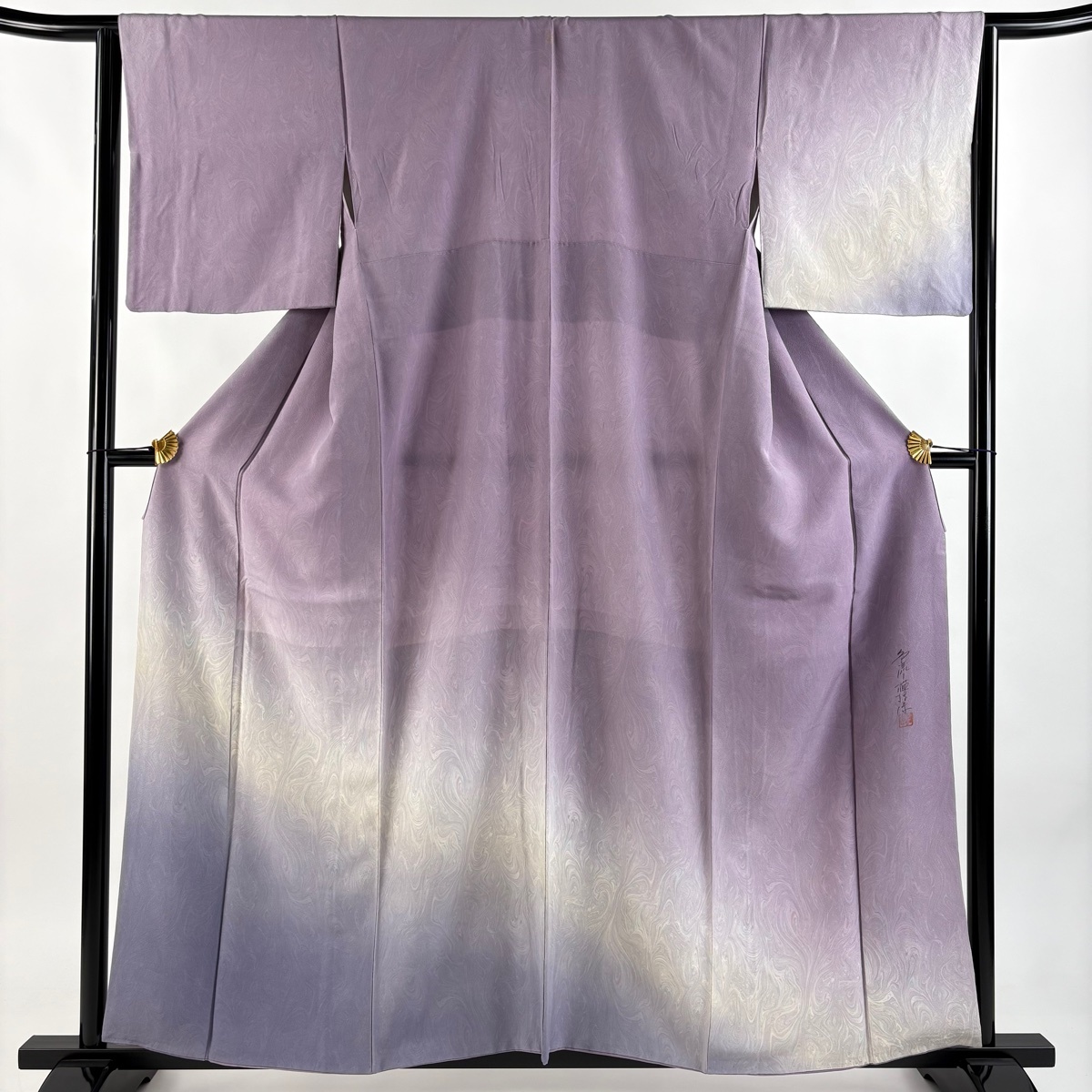 | 付下げ 名品 落款 墨流し ぼかし 薄紫 袷 身丈159 裄丈65 M 正絹 【中古】 |