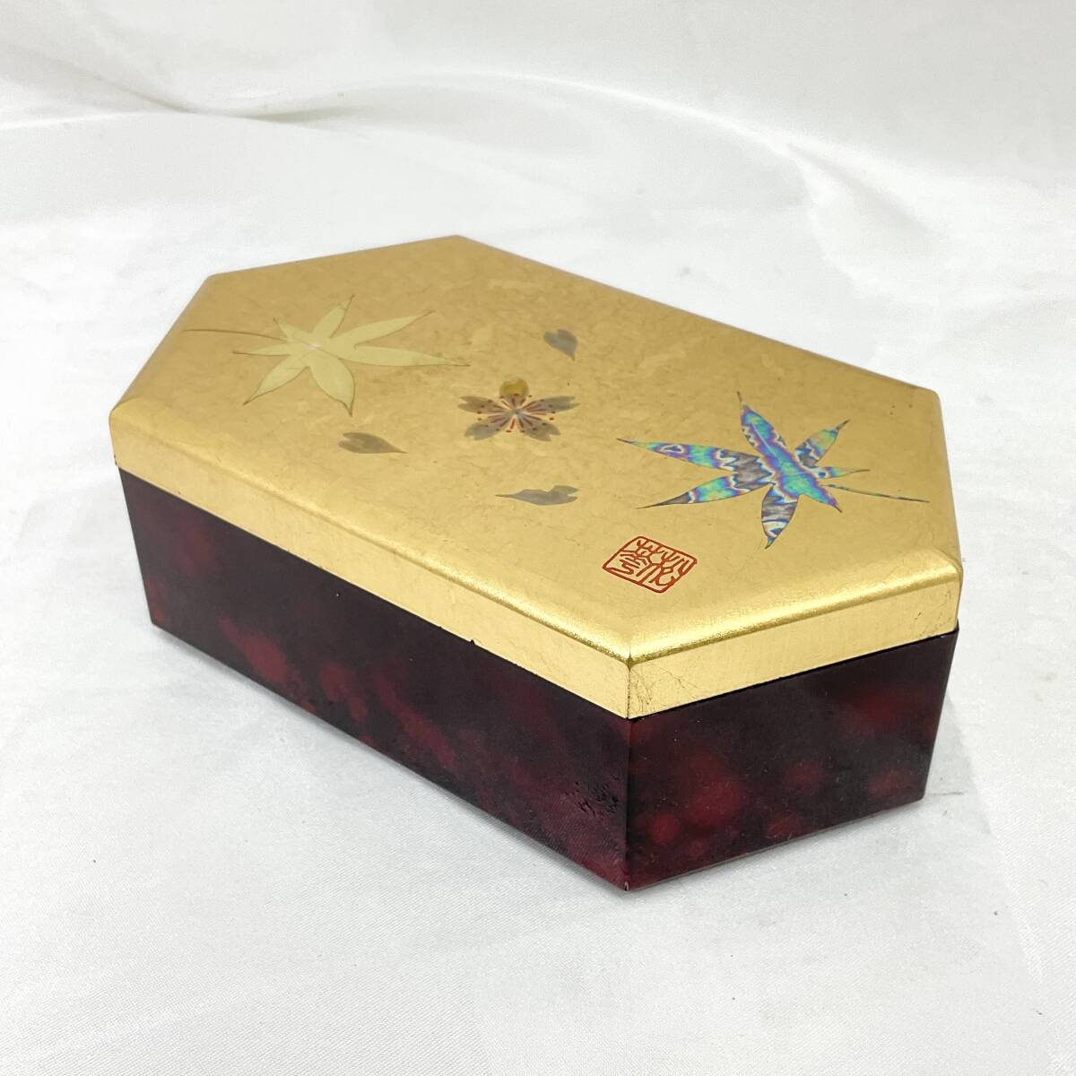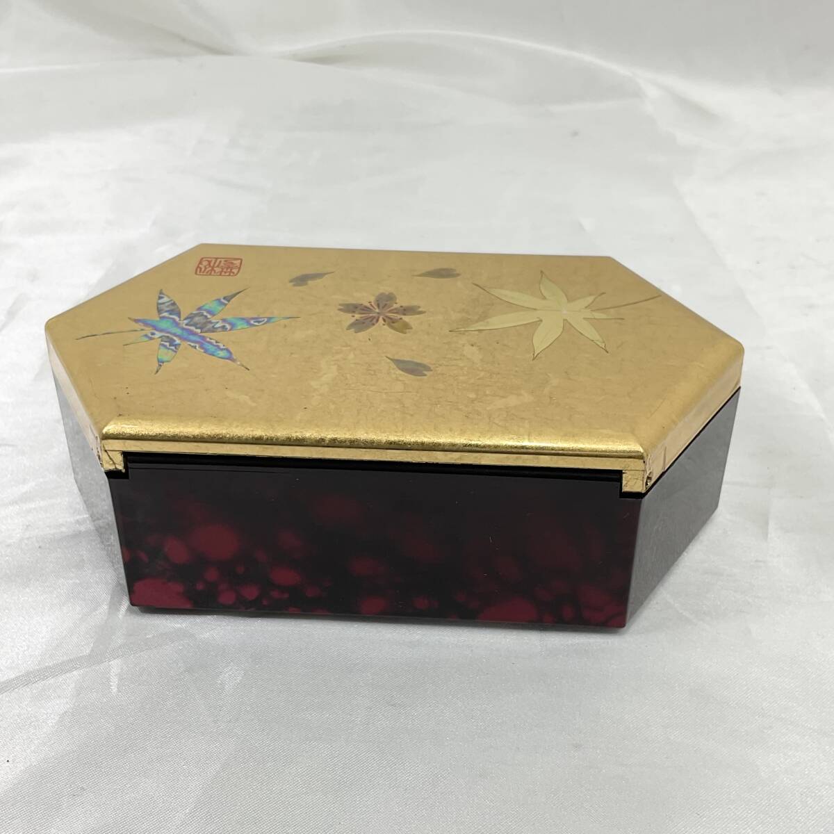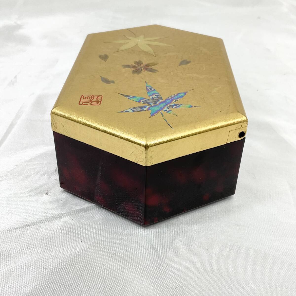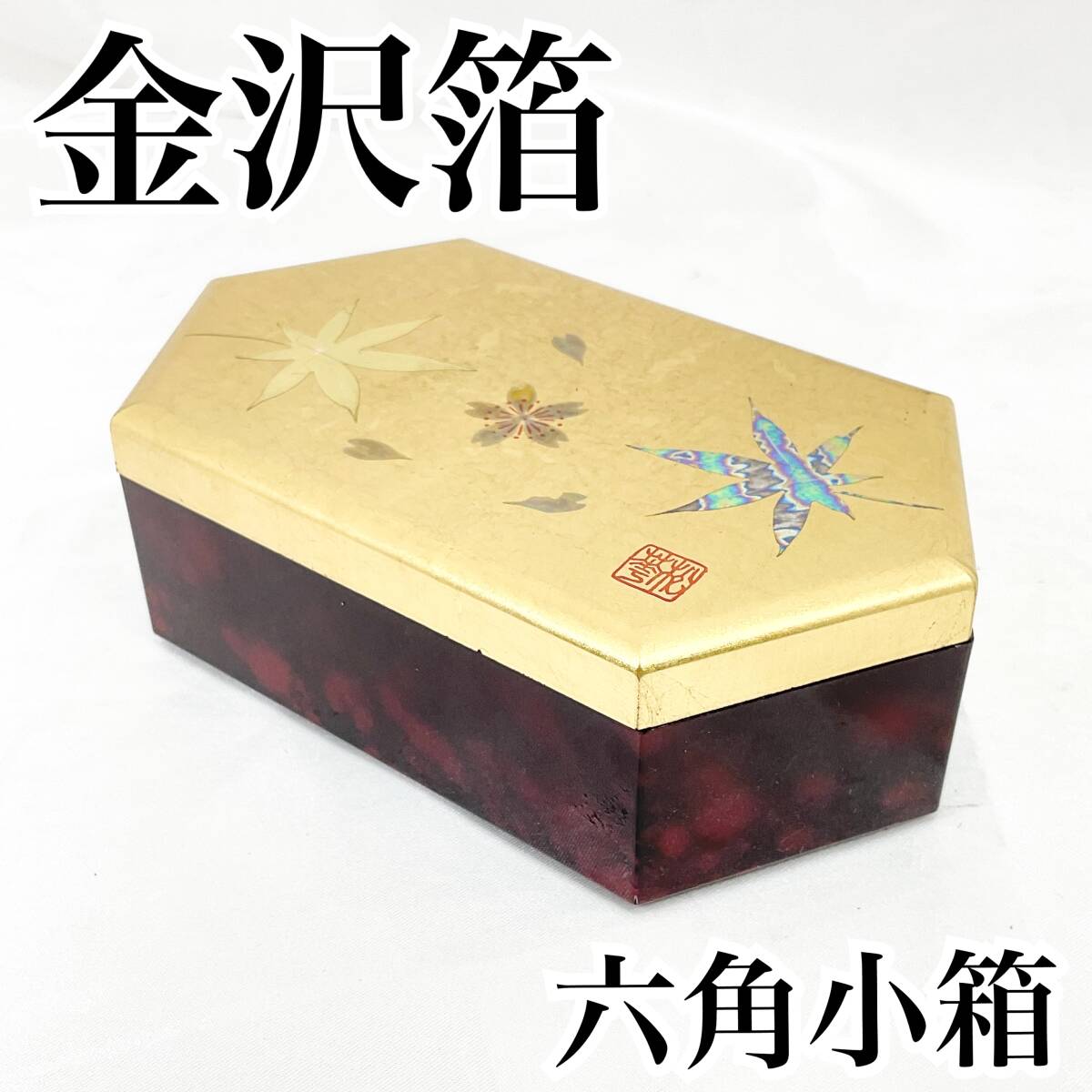 金沢箔 六角小箱 鏡付き 約8.5cm×約14.5cm×約4.5cm 金箔工芸品 松琴 (E319)