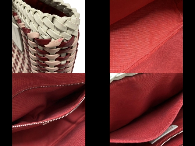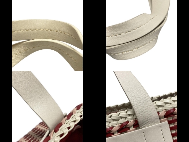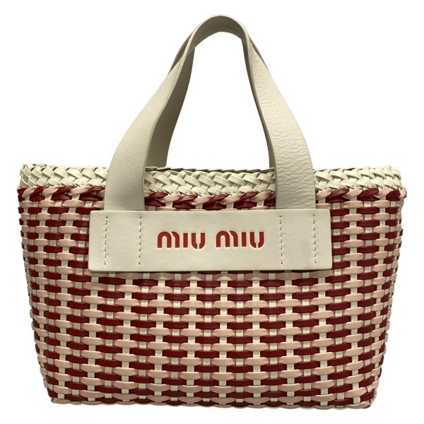 ミュウミュウ miumiu トートバッグ 5BA077 - レザー 白×ピンク×レッド 編み込み/かごバッグ バッグ