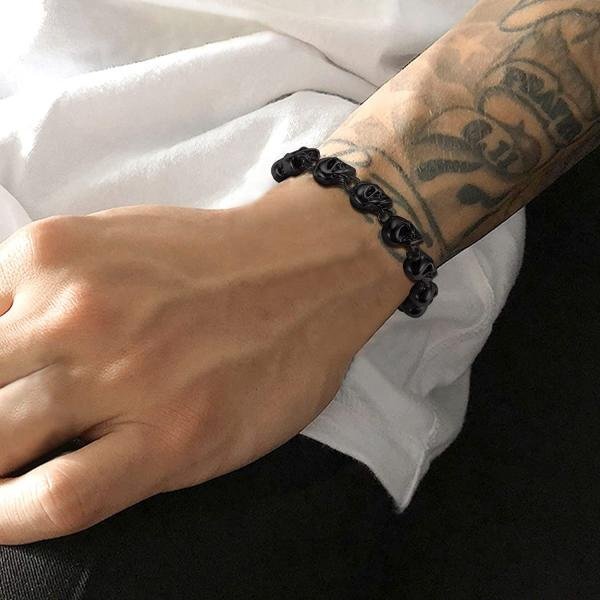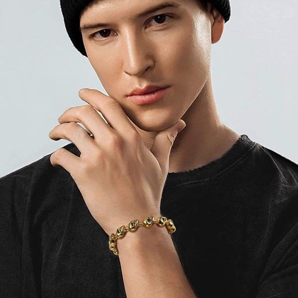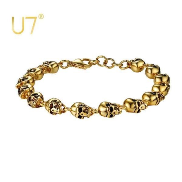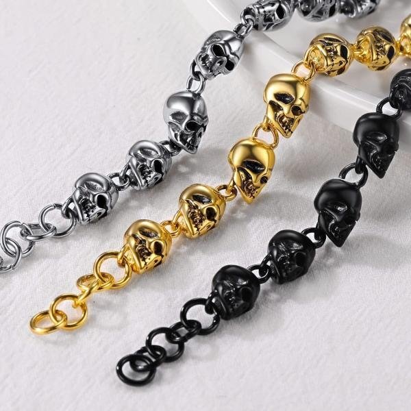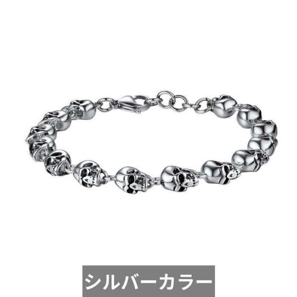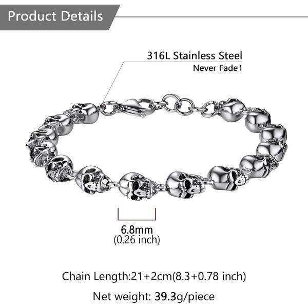 メンズ スカル リンク ブレスレット ステンレス シルバー ビンテージ ゴシック パンク 8.3インチスカル スケルトン