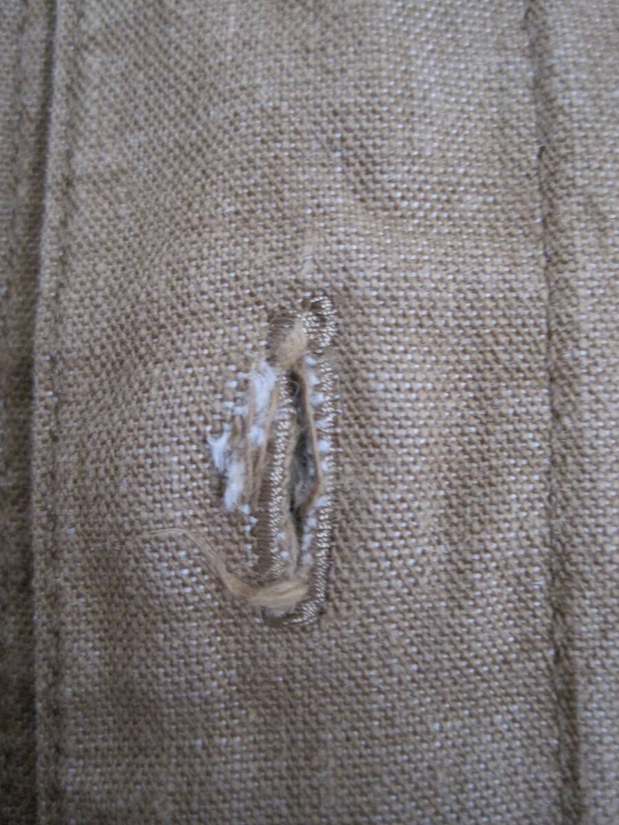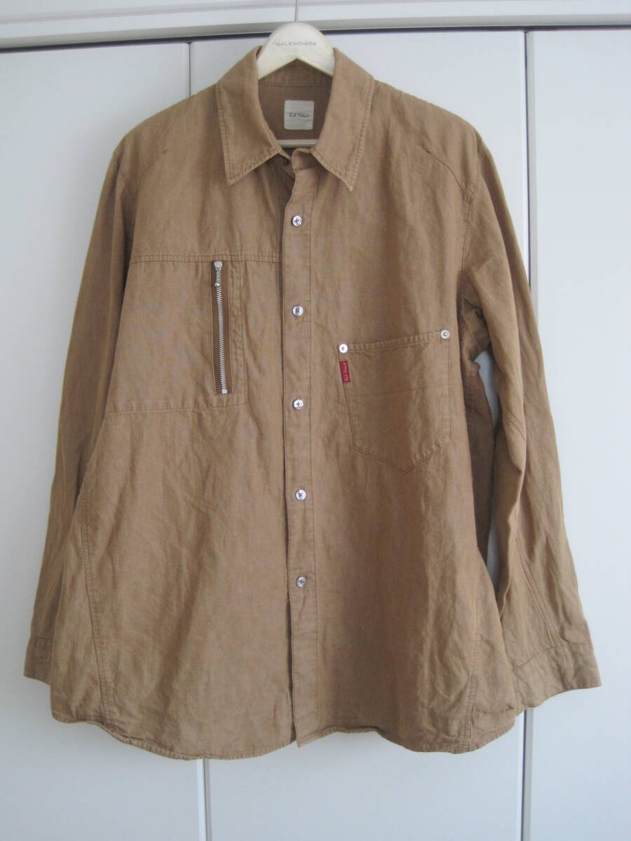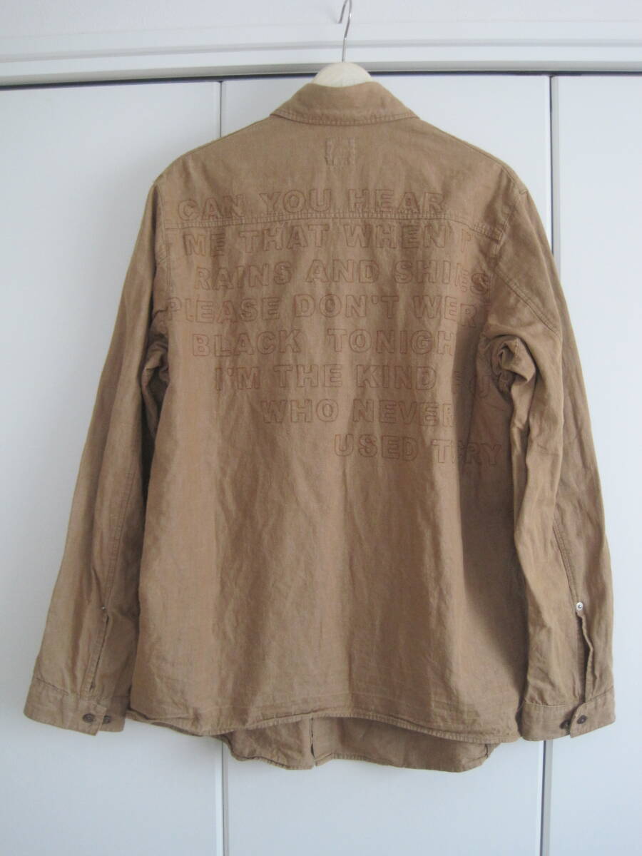 Karl Helmut カールヘルム コットン×麻 背中メッセージ入り シャツブルゾンになります。着用感があり、写真のような瑕疵があります。後ろ着丈が前より短いデザインです。カラーは茶系、サイズはL、綿70%、麻30%です。肩幅45cm、袖丈62cm、身幅60cm、後ろ着丈69cmです。素人の採寸ですので若干の誤差、商品状態はご了承ください。 落札後は、ノークレーム、ノーリターン、ノーキャンセルでお願いします。発送方法はレターパックです。ほかにも色々出品していますので良かったらご覧ください。