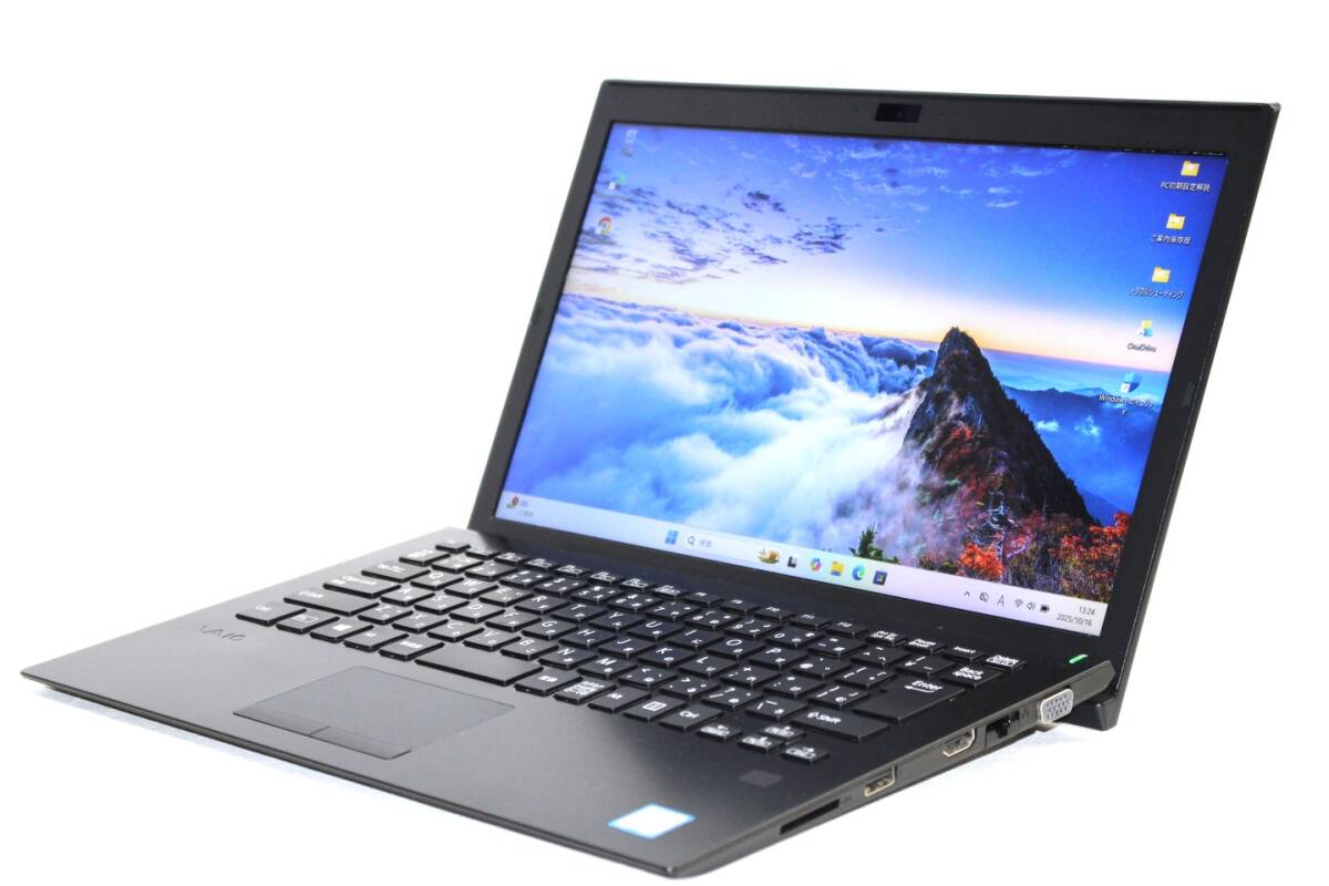 【メーカー】SONY・VAIO ノートパソコン 【型番/品名】VAIO Pro PG VJPG11C11N i7 【CPU】Core i7-8550U 1.80GHz / 4コア8スレッド / ターボ・ブースト最大4.00GHz 【メモリ】16GB 【ストレージ】SSD 256GB 【ディスプレイ】13.3インチ FHD 解像度 1920x1080 ※カテゴリ--13.0~13.9インチ 【グラフィック】Intel(R)内蔵グラフィックス 【光学ドライブ】-- 【サウンド】ステレオスピーカー内蔵、インテル High Definition Audio準拠 【セキュリティ機能】TPM搭載(TCG ver.2.0準拠)、セキュリティーロック・スロット 【Webカメラ】搭載 【キーボード】バックライトキーボード 【無線LAN】無線LAN 【その他装備】Bluetooth、指紋認証、USBTYPE-Ax3、HDMI (※その他インターフェースは画像とメーカーページ等でご確認ください。) 【OS】Windows11Pro-64bit 【Officeソフト】アプリ無し(Microsoft Web版Officeご利用可) 【ウイルス対策】Windows Defender、Windowsファイアウォール 【寸法/質量】幅:320.4mm/高さ:15.0~17.9mm/奥行:216.6mm/重量:約1.06kg(仕様・構成により変動する場合あり) 【付属品】ACアダプタ(N) 【メーカーページ】(スペック完全一致でない場合あり) https://vaio.com/business/pg11/index.html https://vaio.com/business/pg11/specification.html 【取扱説明書】(機種・型番完全一致でない場合あり) https://support.vaio.com/products/VJPG11/