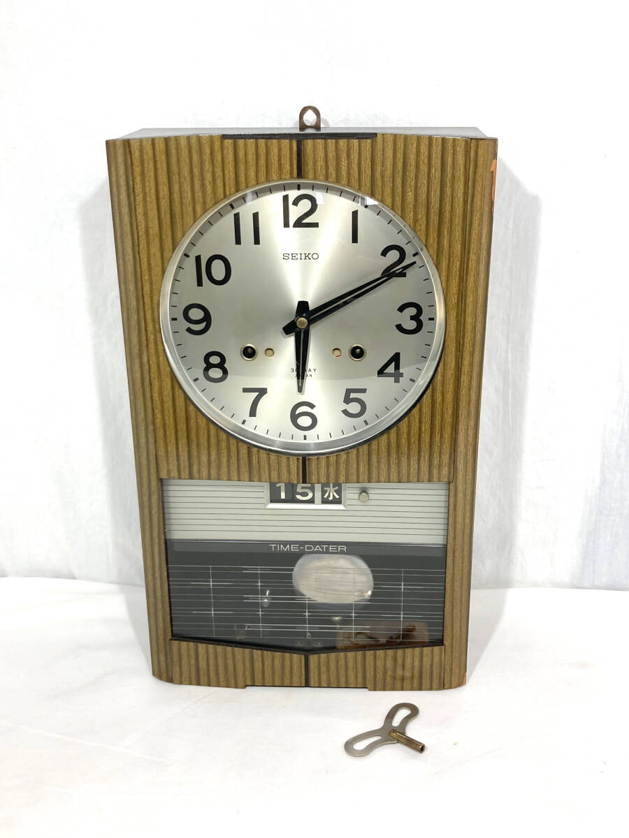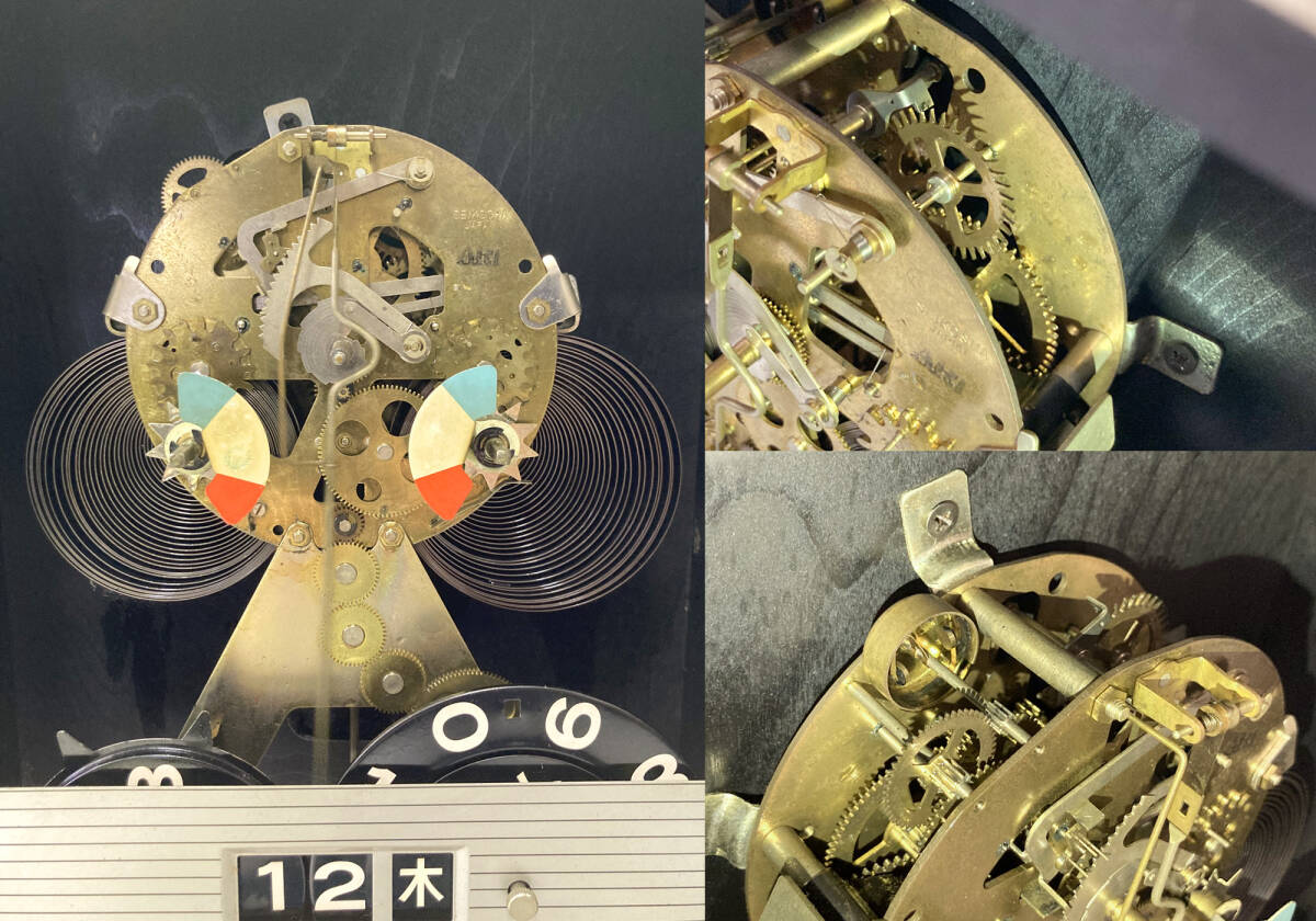 ∴精工舎 ゼンマイ式ボンボン時計 30日時計 動作確認済▼商品説明商品名:カレンダー付 ゼンマイ式壁掛け時計メーカー:精工舎(セイコー) 品番:4PC763 サイズ:幅 25.5cm 奥行 10.3cm 高さ 43.8cm 付属品:振り子・ゼンマイキー (写真に写っているものがすべてとなります) ▼商品の状態・使用感や保管状況により、本体などに汚れや傷みなどがあります。予めご容赦下さい。○カレンダー付のボンボン時計です。 ○動作確認にて約3週間、ゼンマイが緩むまで動作確認を行いました。途中で止まることなく、しっかりと時を刻みました。 ○刻打ち、半打ちも出来ます。また、カレンダーも自動で回転して動作したことも確認しております。 ○内部は状態が良く、特に錆などもないようです。 ○外観では傷があり、右上の部分に大きく剥がれが見られます。(写真あり) ○文字盤はとてもきれいな状態です。 ○前所有者様が書かれたメモがあり、購入されたのが昭和40年と記述されていました。写真にはありませんが、一緒にお送りいたします。 ○簡単な清掃、アルコール除菌済み。 ◆商品の状態のランク:Cランク 【Sランク】→ 未使用品であり、新品同様の状態。 【Aランク】→ 未使用品であるが、保管状況や経年劣化などでキズ・痛み・汚れなどが多少ある状態。 【Bランク】→ 中古品であるが、キズ・痛み・汚れなどがあまりない美品の状態。 【Cランク】→ 中古品である。しかも使用感・保管状況・経年劣化などでキズ・痛み・汚れなどが多少ある状態。 【Dランク】→ 中古品である。しかも使用感・保管状況・経年劣化などでキズ・痛み・汚れなどがひどくなっている状態。 【Eランク】→ ジャンク品。現状渡しの商品 ▼発送方法★発送:ゆうパック・・・100サイズ「1330円」・・・全国一律(北海道除く) 「2130円」・・・北海道 ▼その他★この商品は【中古品】です。こちらの中古品は、基本的に作動確認をしております。しかし全部の機能を確認しているわけではありません。 また簡易的な作動確認しか行っておりませんので、長時間の作動確認も行っていません。 以上、ご理解できる方のご入札をお願い致します。 外観の状態については、出来るだけ記載いたしますが、見落とし等ございましたらご容赦ください。 気になる点は、必ず入札前にご質問下さい。 細かい点の気になる方、新品同様の物や通常使用をお望みの方は、入札をご遠慮ください。 ☆日曜日は店休日です。 |