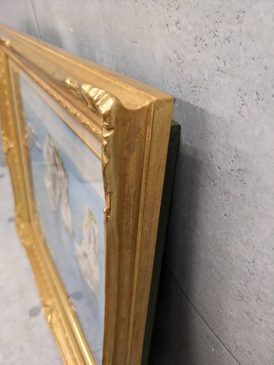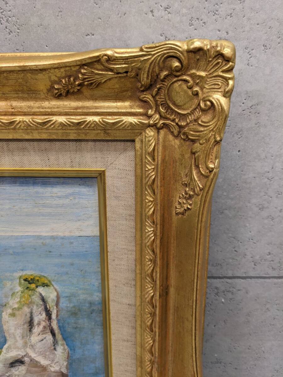 jj335■額装品 油彩 E.MIYAURA作「レバノンのハトの岩」 F8 外寸約601×530mm ゴールド縁 前面ガラス/140