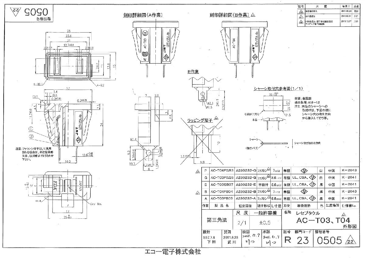 EDK AC-T03 ACアウトレット (AC125V/15A) [4個組]【管理:SA1753】