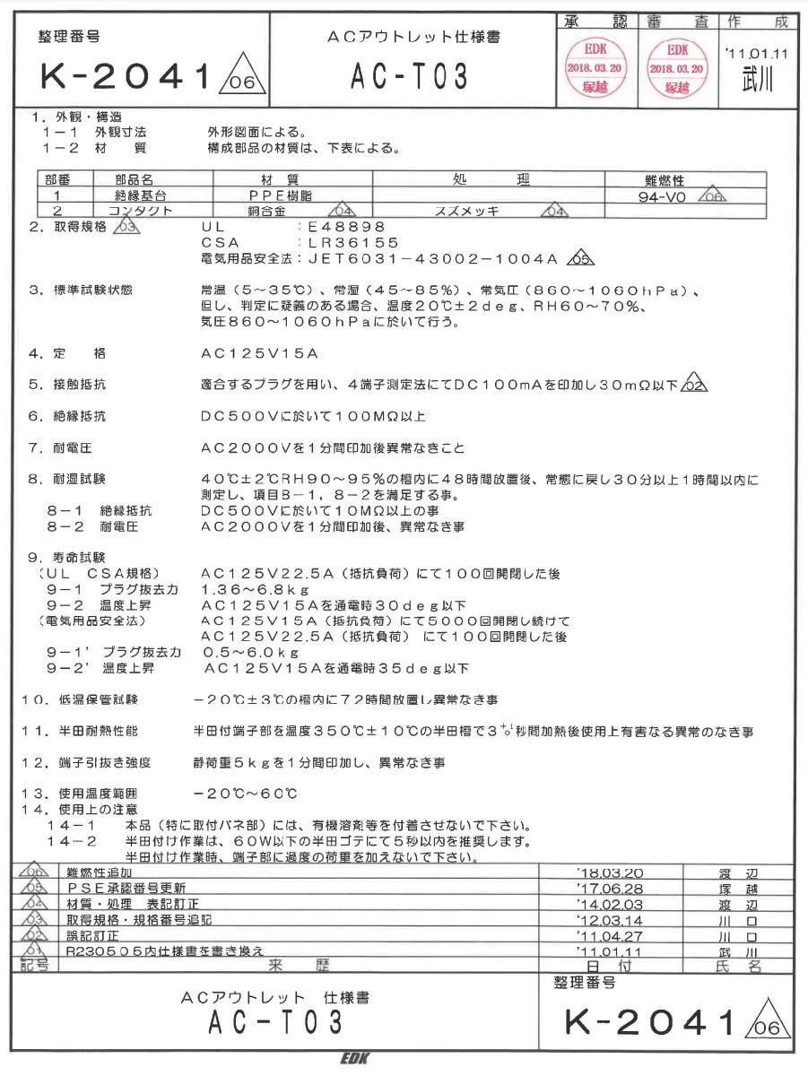 ■EDK AC-T03 ACアウトレット (AC125V/15A) [4個組]【管理:SA1753】