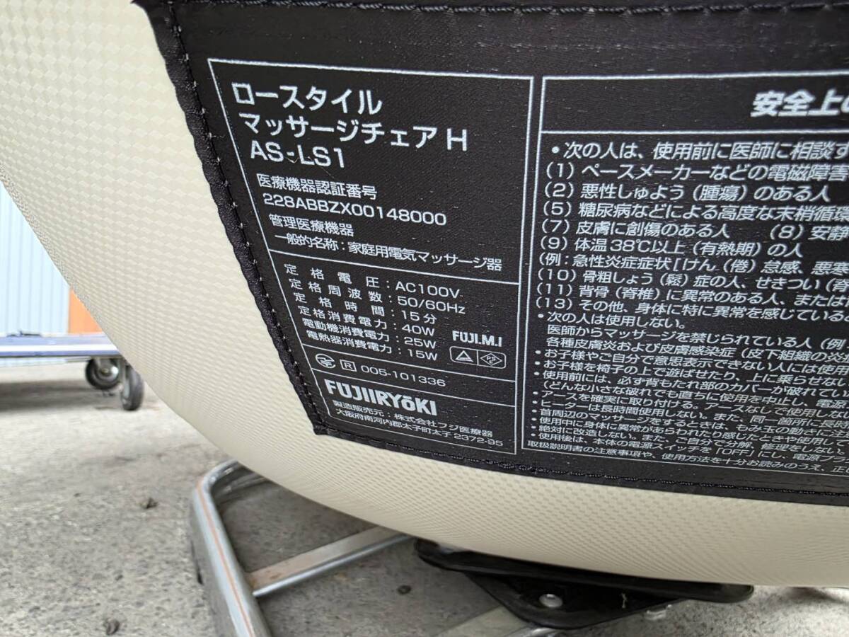 L146 岐阜県大垣市まで直接引き取り限定 FUJIIRYOKI AS-LS1 ロースタイルマッサージチェアH 10/16