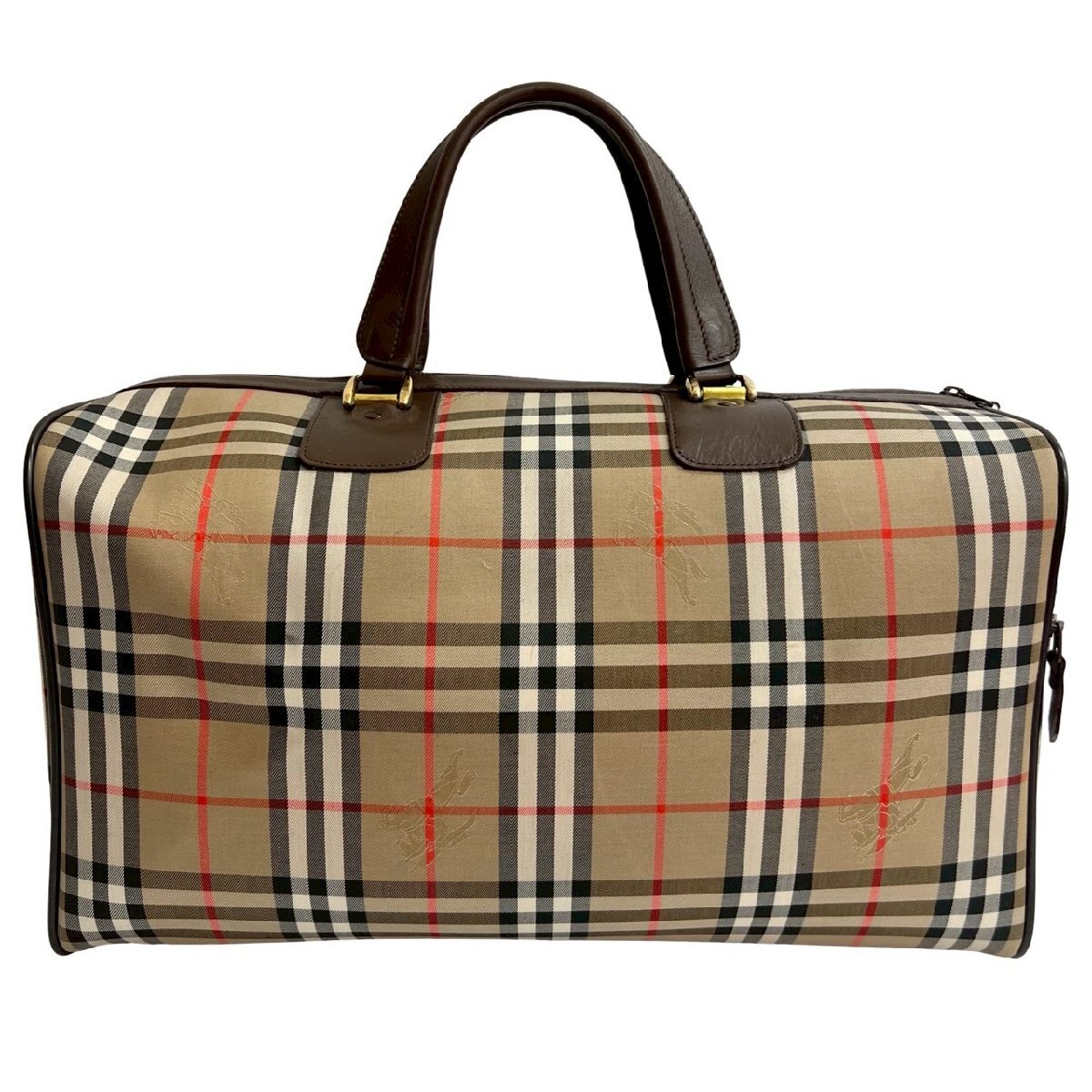 極 美品 鍵付き Burberrys バーバリーズ ノバチェック 柄 シャドーホース ロゴ キャンバス レザー 本革 ボストンバッグ ブラウン 70666