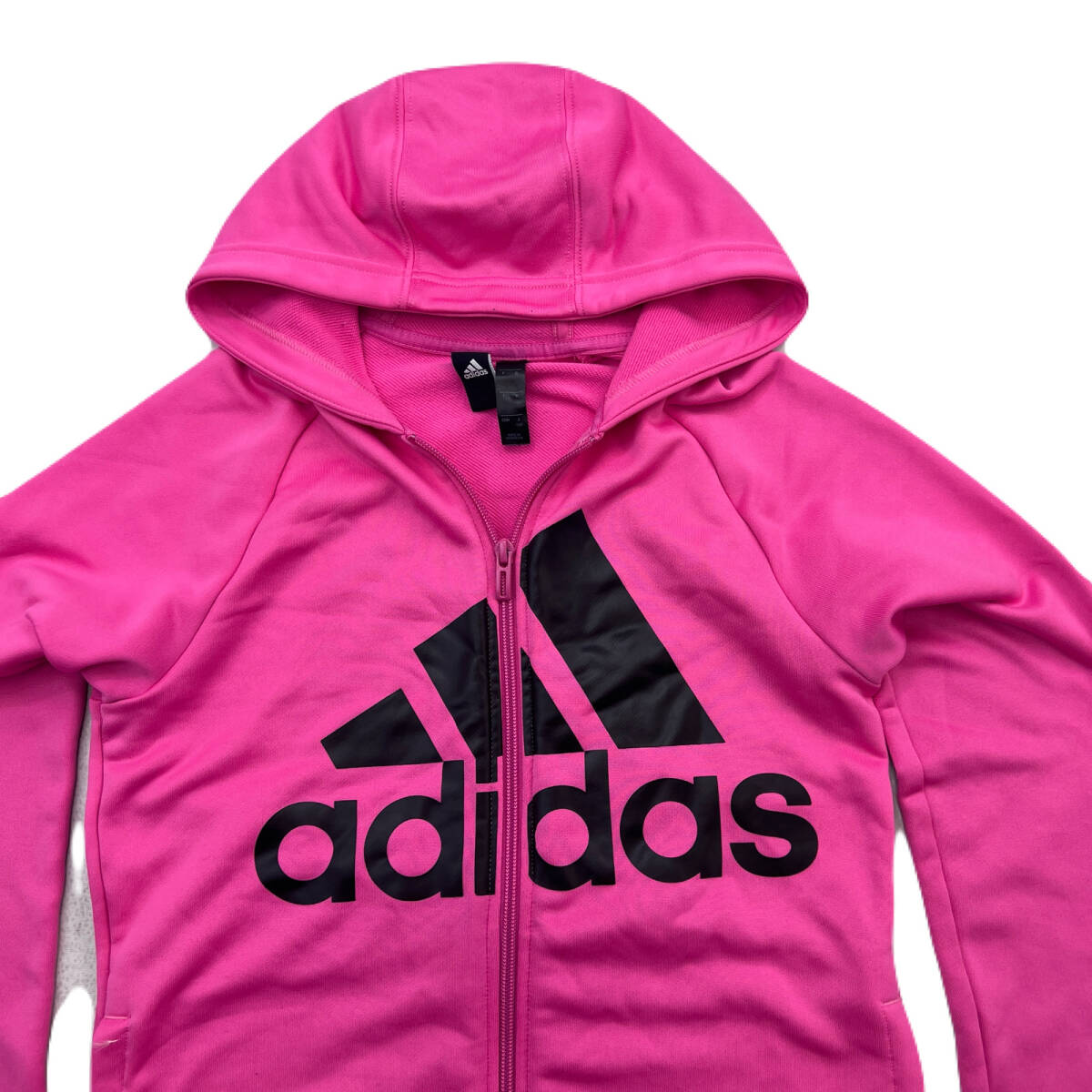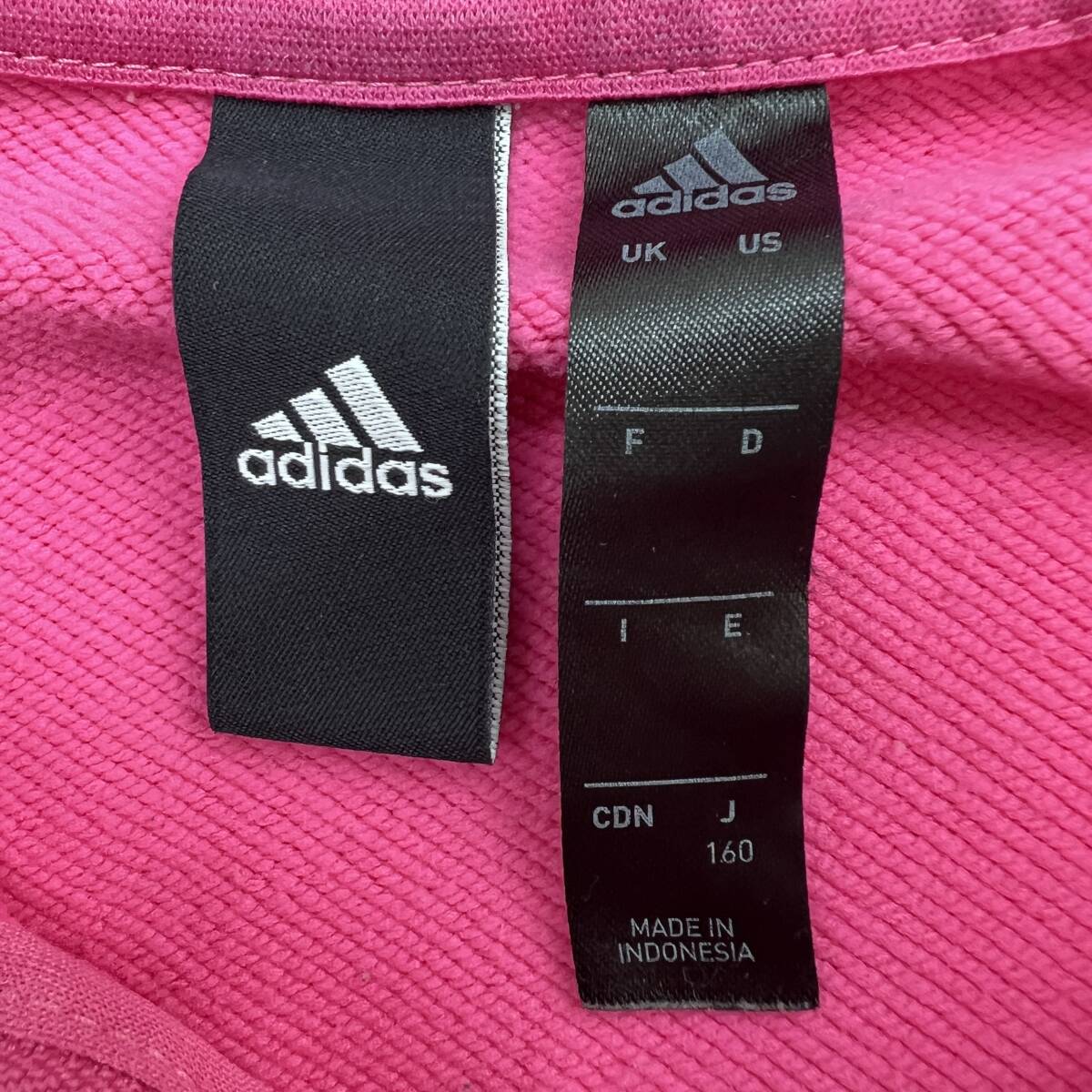 アディダス ジップアップ パーカー ピンク 発色良 胸ロゴ キッズ 160サイズ ●DM127