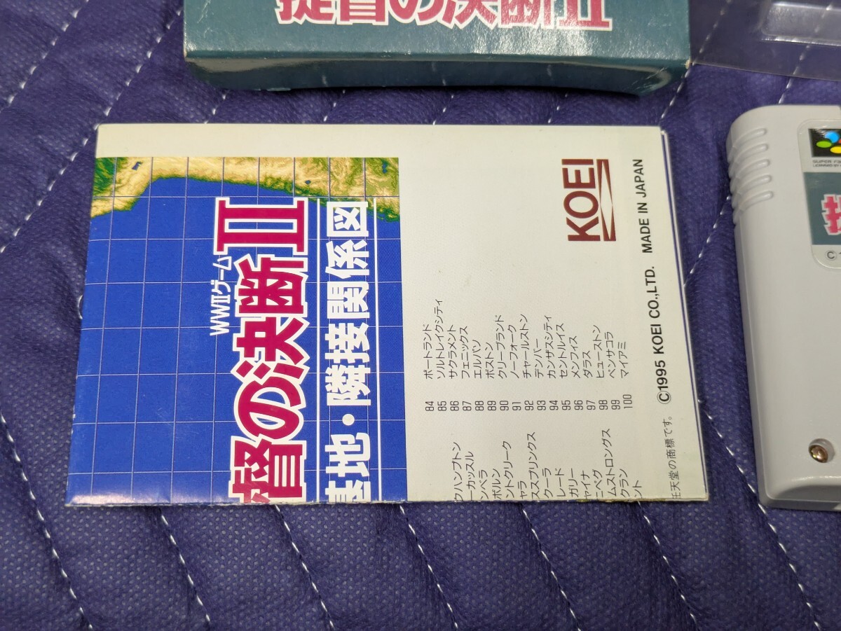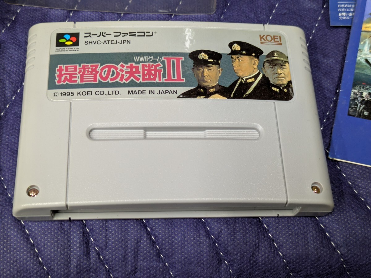 任天堂スーパーファミコンのソフト、KOEIの提督の決断Ⅱ、動作確認済み、元箱取説付き、中古現状での出品になります。