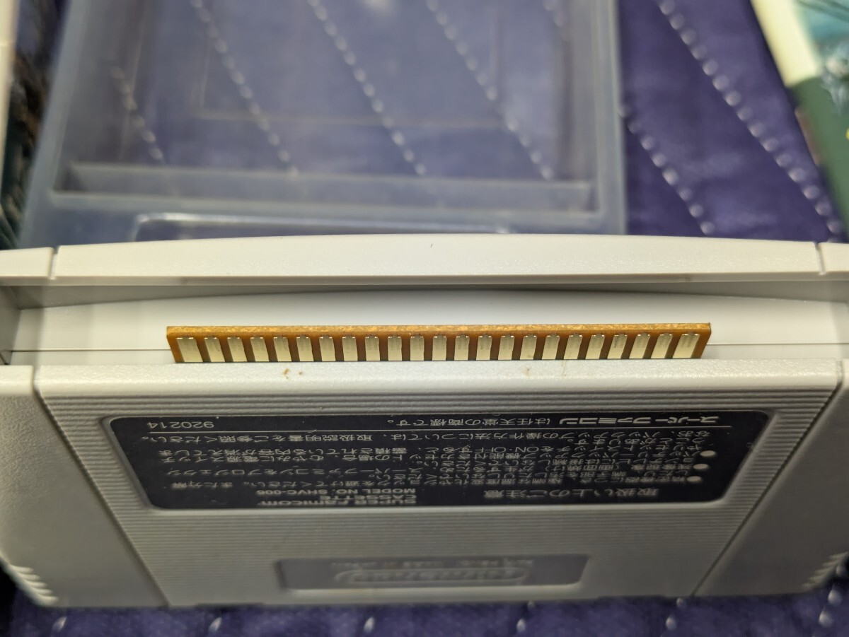 当方手持ちのスーパーファミコンとブラウン管テレビにて動作確認は済ませてありますが、念の為商品到着後に接点を綿棒などで軽く清掃されてからご活用下さい。