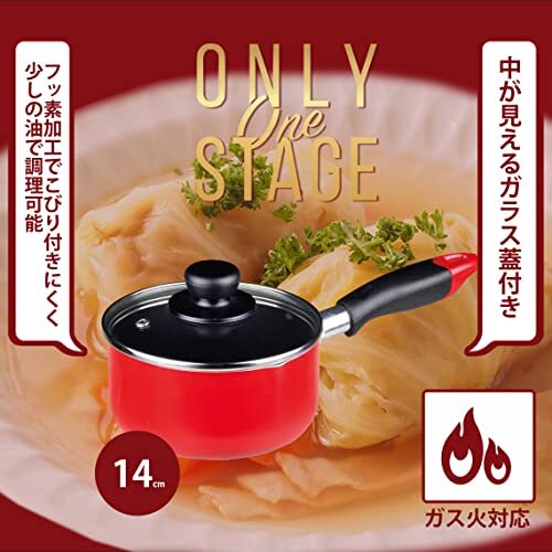 説明 製品サイズ:(約)全長28×幅15×高さ11.5cm 製品重量:(約)0.47kg 鍋の深さ:(約)6.5cm 表面加工:内面/ふっ素樹脂塗膜加工、外面/焼付け塗装 素材・材質:本体/アルミニウム合金(底の厚さ1.6mm)、取っ手/フェノール樹脂(耐熱温度150度) 寸法:14cm 満水容量:1.1L 蓋 品名:強化ガラス製器具、強化の種類:全面物理強化、その他の材料:縁リング/ステンレス鋼、つまみ/フェノール樹脂(耐熱温度150度)、つまみの座板/ナイロン(耐熱温度180度) 生産国:中国 ※ガス火専用 使いやすさ抜群!オンリーワンステージシリーズ 軽くて使いやすい!マルチに活躍するガラス蓋付ミルクパンです。 ふっ素加工でこびりつきにくく、少しの油でも調理可能! 蒸気孔付きのガラス蓋も付属しているので調理中の確認もラクラク! ちょっとした煮込み料理にも! ご注意:IHクッキングヒーターではお使い頂けません。 オーブン・電子レンジでは使用しないでください。 食器洗い乾燥機には使用しないでください。