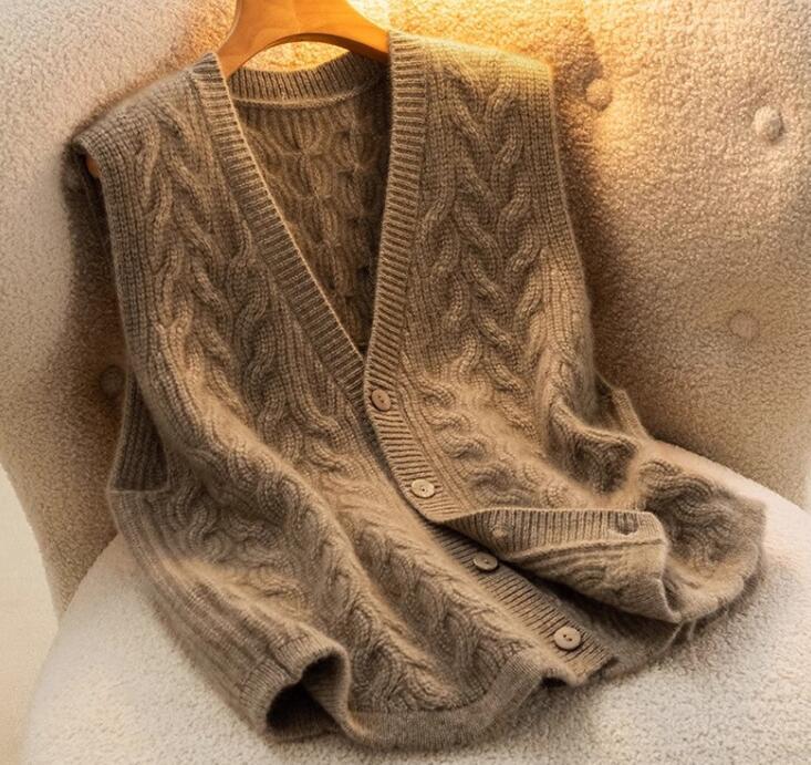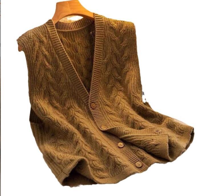 新品秋冬ニットベスト トップス Vネック 前開き レディース ニット おしゃれ 大きいサイズ 着痩せ 重ね着 セーター 通勤 羽織り カーキ