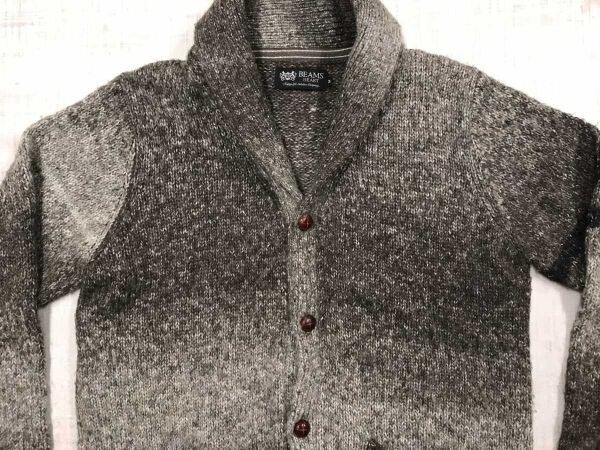 ビームス BEAMS HEART レトロ アメカジ グラデーションボ―ダ― 袖ライン くるみボタン ショールカラー ニット カーディガン メンズ M 茶 です。