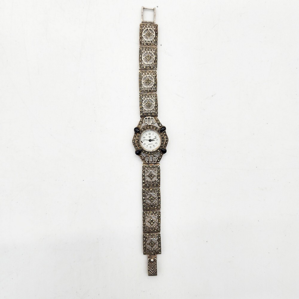 アンティーク 銀細工腕時計 銀無垢 シルバー製 マルカジット アールデコ銀細工 925刻印 ヴィンテージ 28-49
