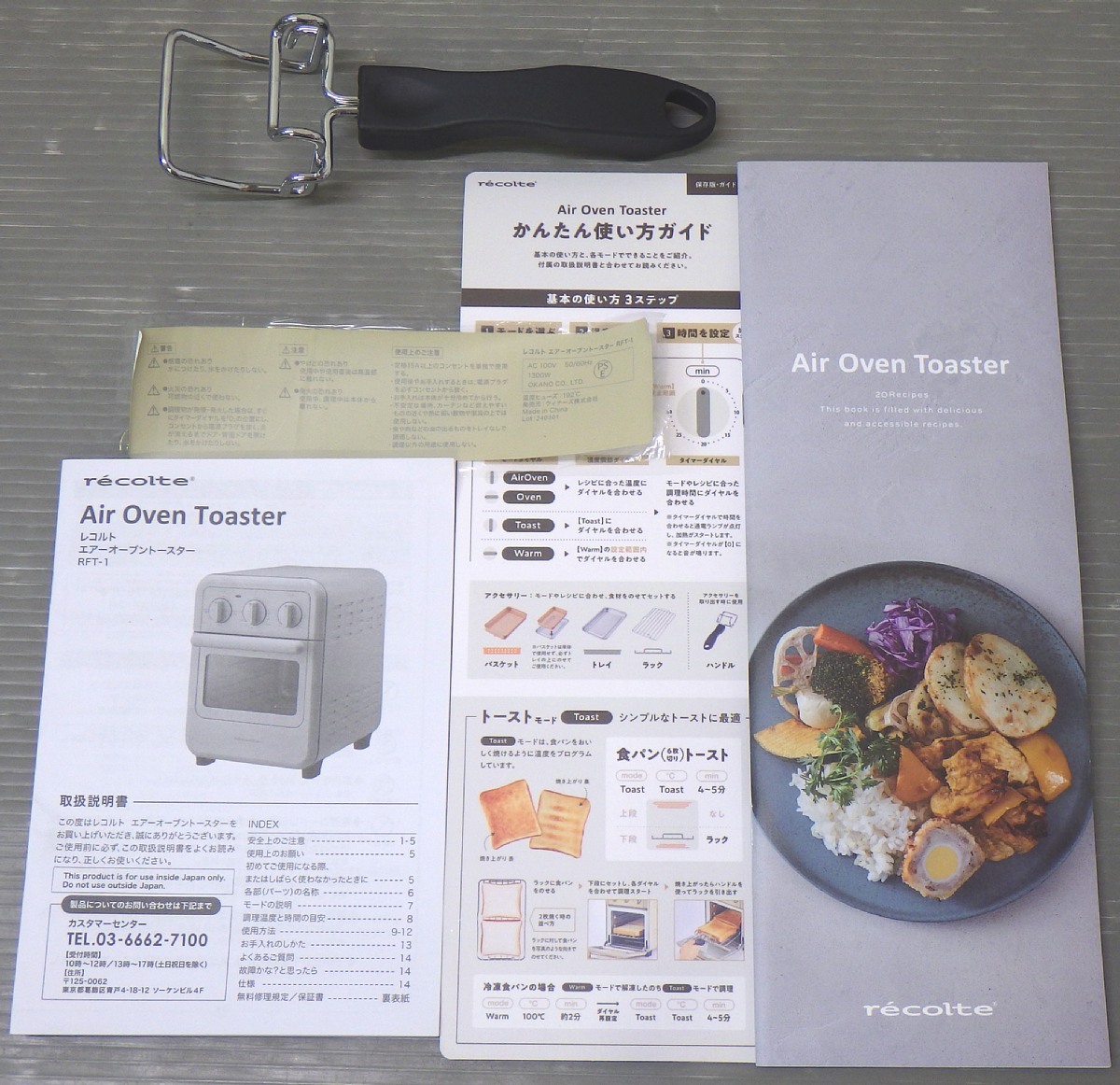 付属品:ラック、トレイ、バスケット、パンくずトレイ、ハンドル、取扱説明書・レシピブック等書類