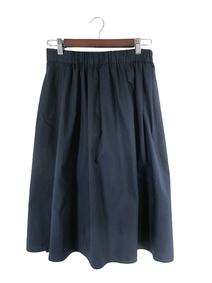 アンタイトル UNTITLED スカート ウエスト ゴム 無地 ミモレ 裏地付き サイズ2 ネイビー QQQ レディース