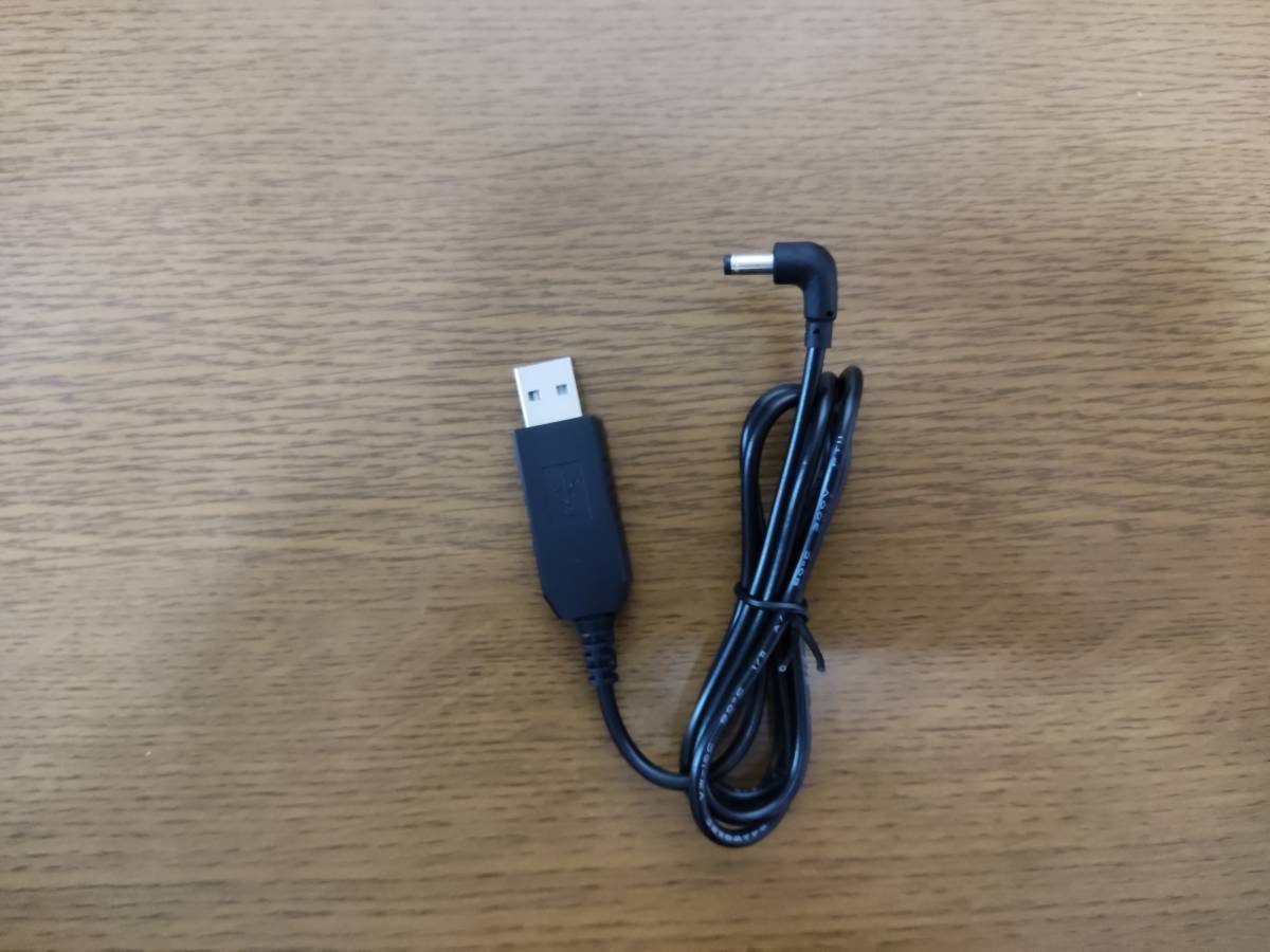 モバイルバッテリーやシガーUSBアダプタなどの5V出力を12Vに変換してハンディ無線機を充電するためのケーブルです。