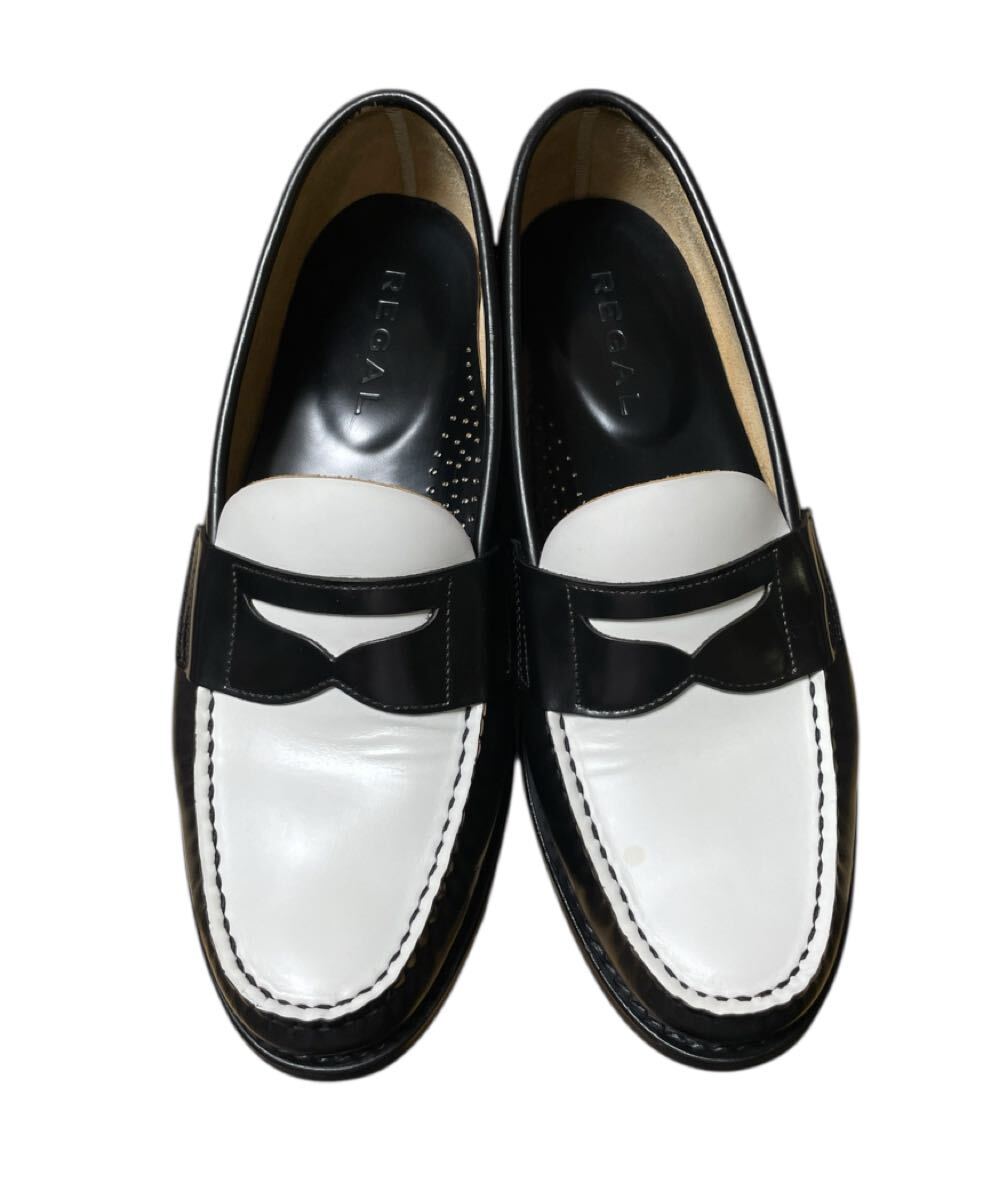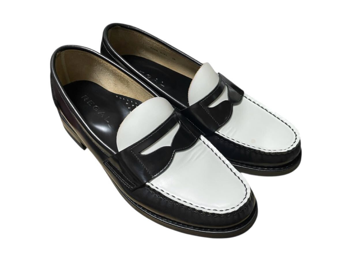 REGAL リーガル 61FL レザー ローファー BLACK & WHITE 26cm 白黒 ビブラムソール ブラック&ホワイト コインローファー