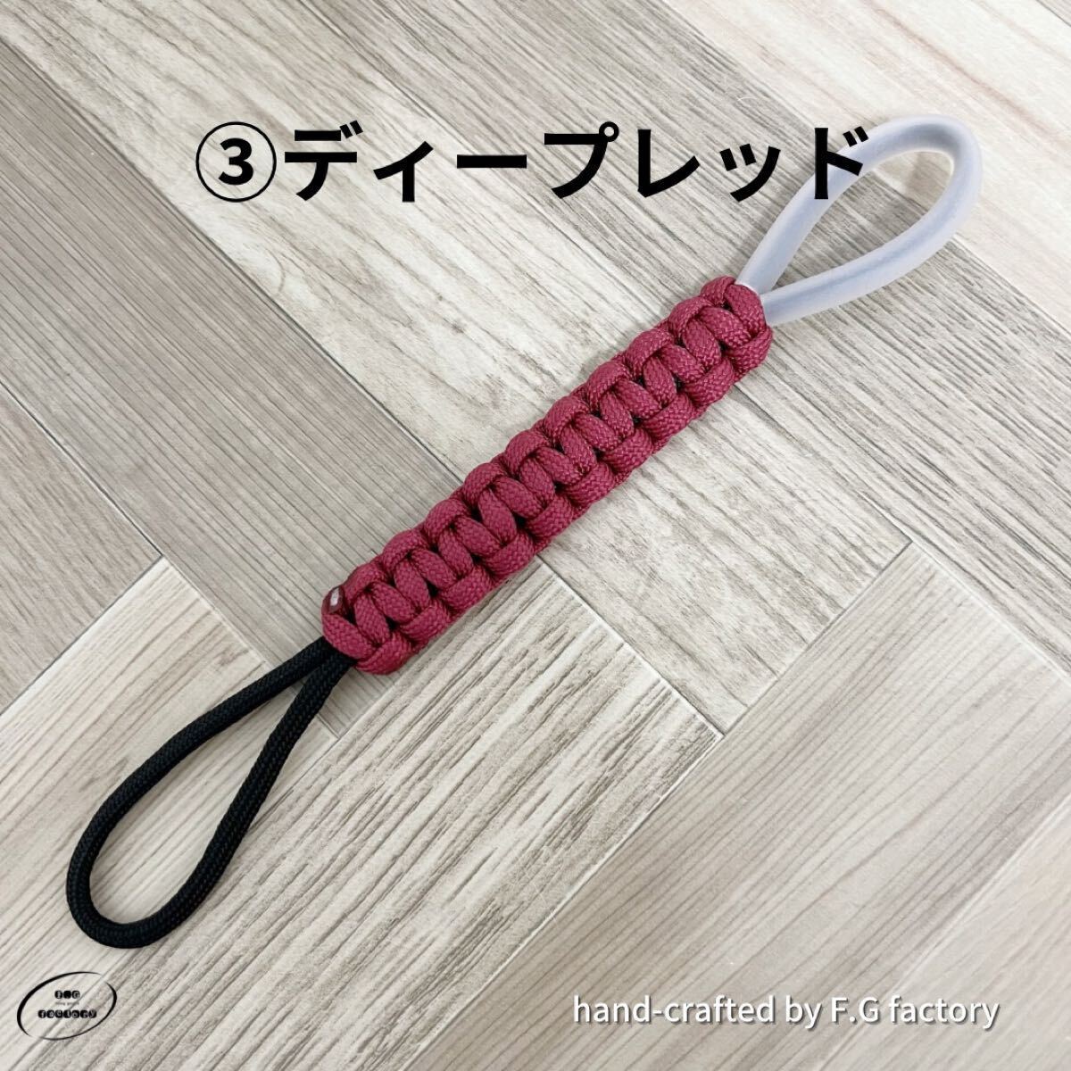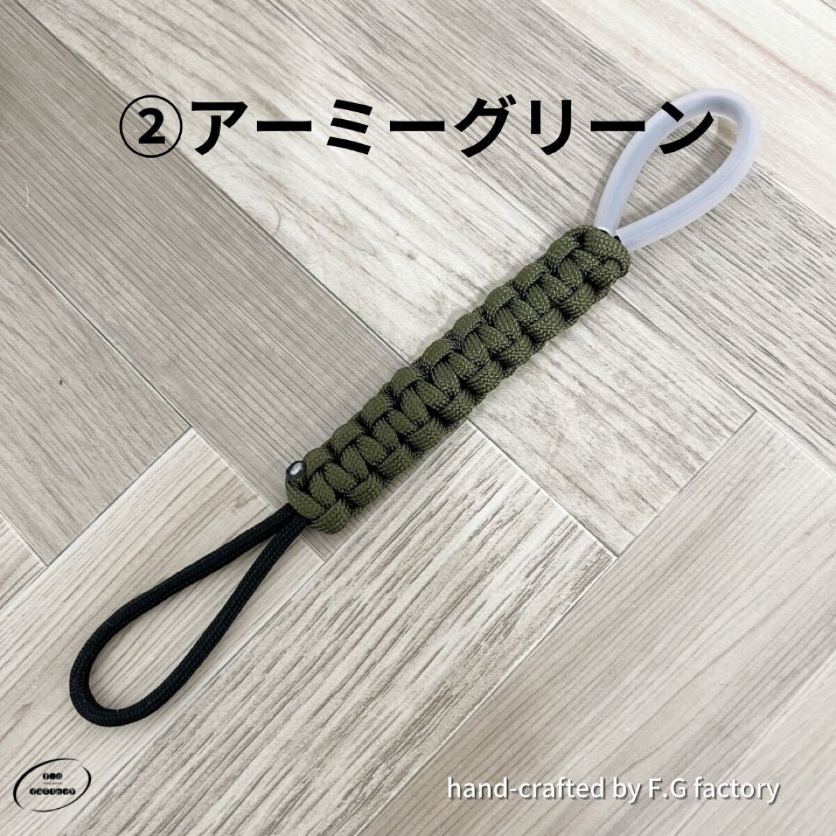 4ミリパラコードで編んだ尻手短ロープになります。