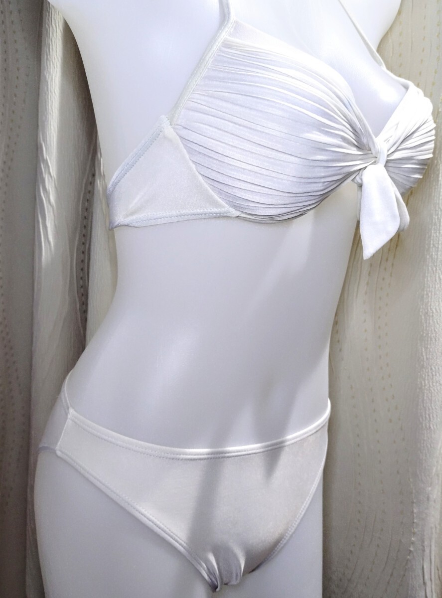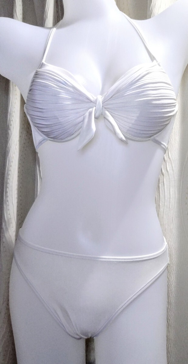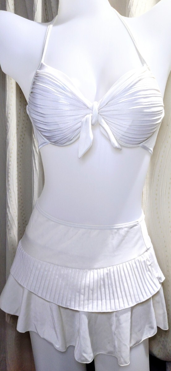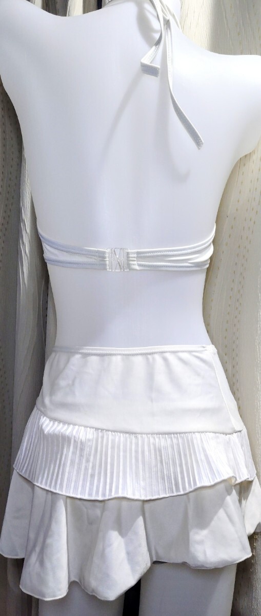 中古★レディース 白 ビキニ Mサイズ 3点セット スカート付き 水着 ホームクリーニング済み セパレート ホワイト 匿名配送 同梱可