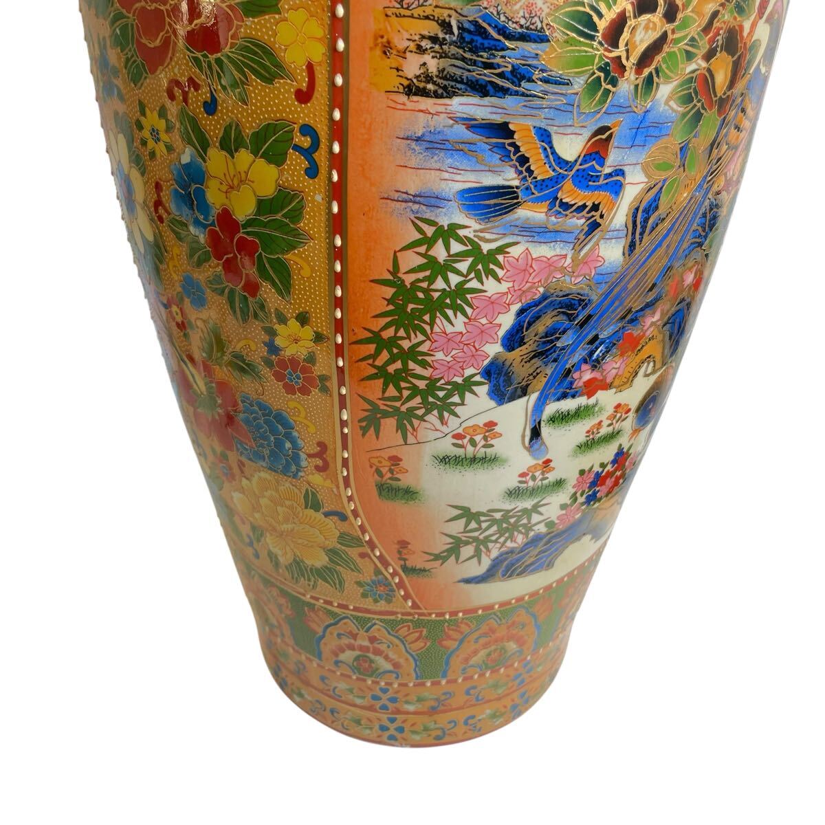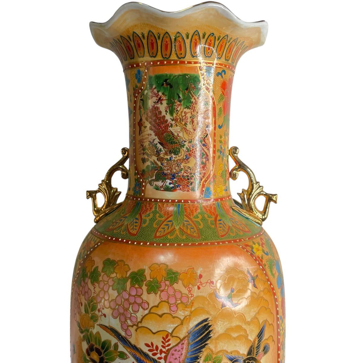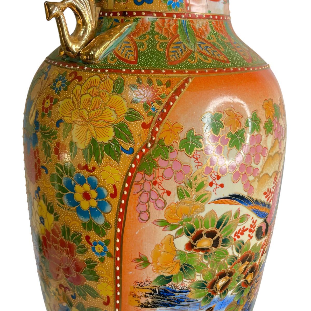 ■ ●薩摩焼 大花瓶 高さ91cm 直径25cm 金彩 花鳥図 双耳 大壺 花鳥蝶 豪華爛漫 #137