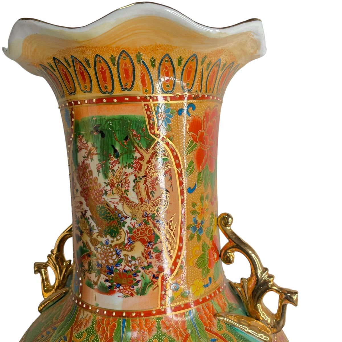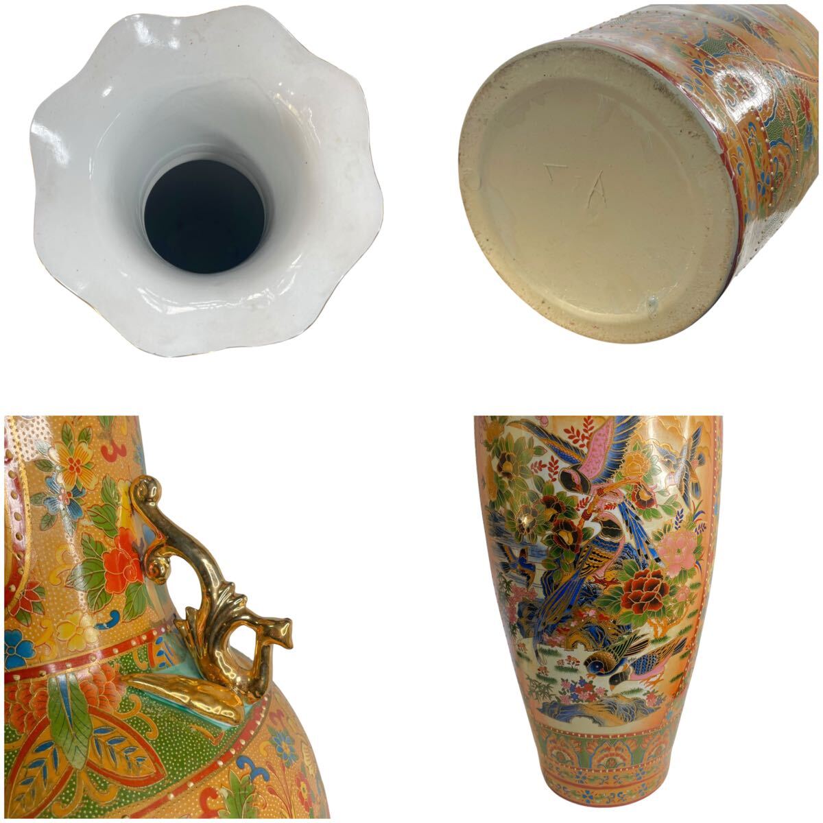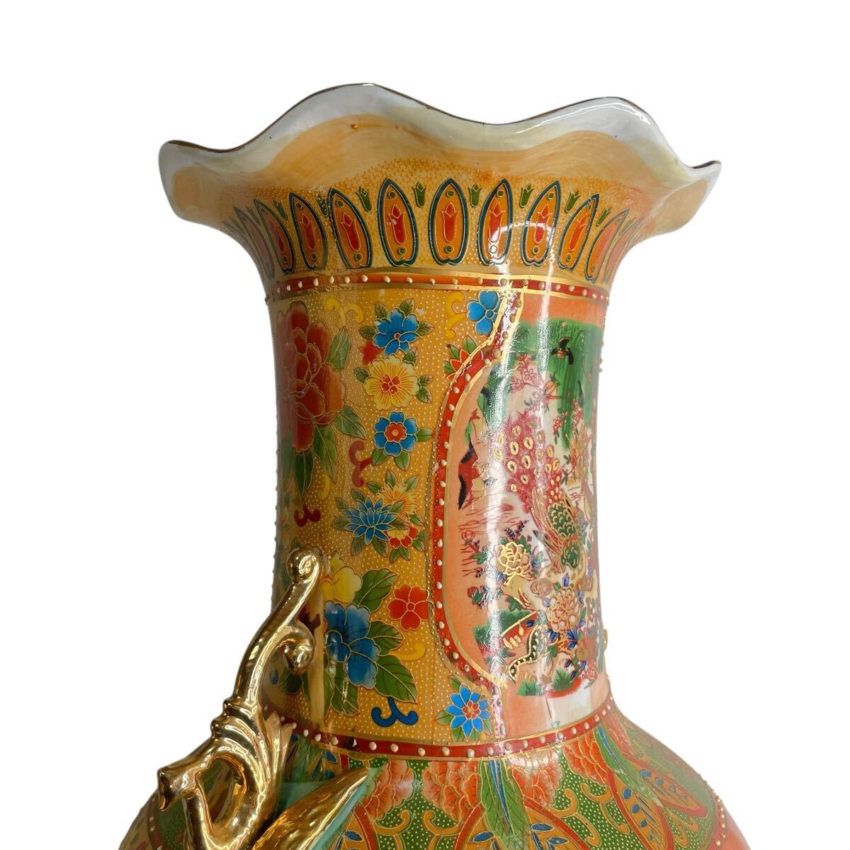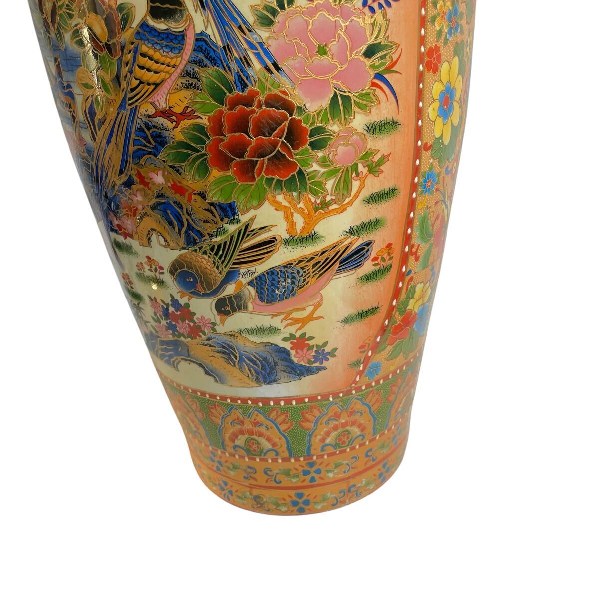 ■ ●薩摩焼 大花瓶 高さ91cm 直径25cm 金彩 花鳥図 双耳 大壺 花鳥蝶 豪華爛漫 #137