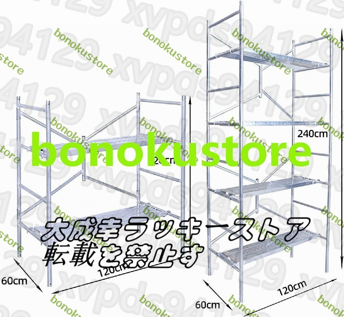 商品説明 商品説明 アルミニウム足場:材質:アルミニウム、足場サイズ:120 * 60 * 240CM(キャスターなし)、120 * 60 * 255CM(キャスター付き)、ステップ数:4層、(滑り止め)、最大耐荷重300 kg、はしごは非常に安定しているので、省スペースの折り目は持ち運びも簡単