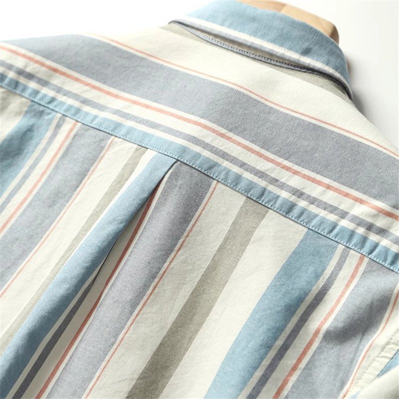 人気爆売新品 DCKMANY メンズ長袖シャツ 純綿 オックスフォード 春夏 着心地良い ストライプ 日常 カジュアル/灰青色T4025-4XL